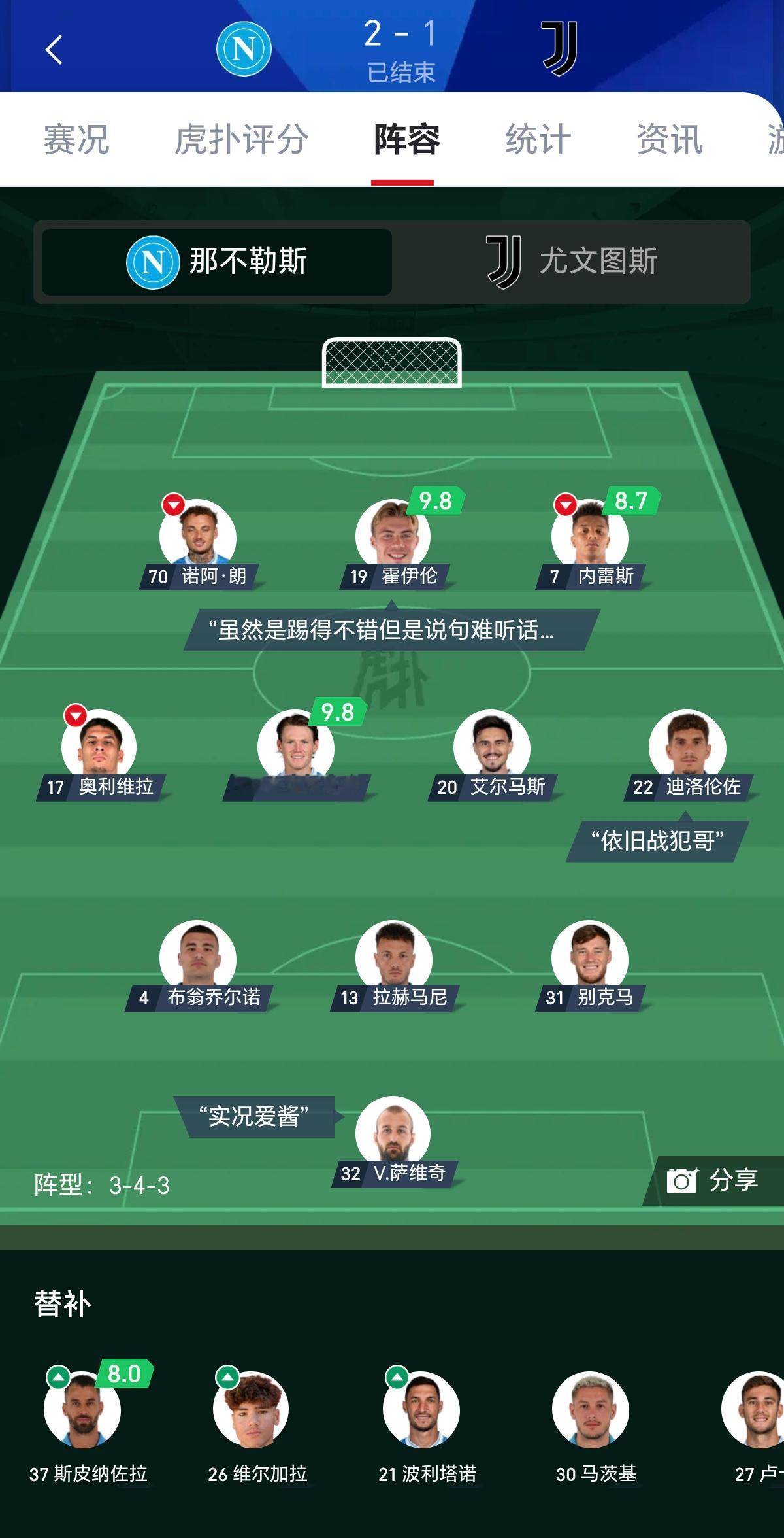 想没想现在的尤文球员水平如此平庸了,这要是去了英超就是保级队啊。 当年C罗在尤文的时候感觉还算个强队,现在这打的什么啊,慢悠悠还没什么技术含量,看的能气个半死。这中场是出不去球也抢不下球,那坎比亚索和小小图哪儿人多往哪儿冲。[捂脸] 这场那不勒斯伤了这么多人,尤文还是被全面压制,只输一个算好了。关键最气人的是还把唯一的威胁伊尔迪滋换下去了,真的无语。 现在意甲局势又逐渐明朗了,又是米兰双雄和那不勒斯争冠了,尤文这赛季是彻底沉沦了。 个人建议尤文把这批庸才球员都卖了吧,学学切尔西彻底重建,买年轻小妖刮彩票。
