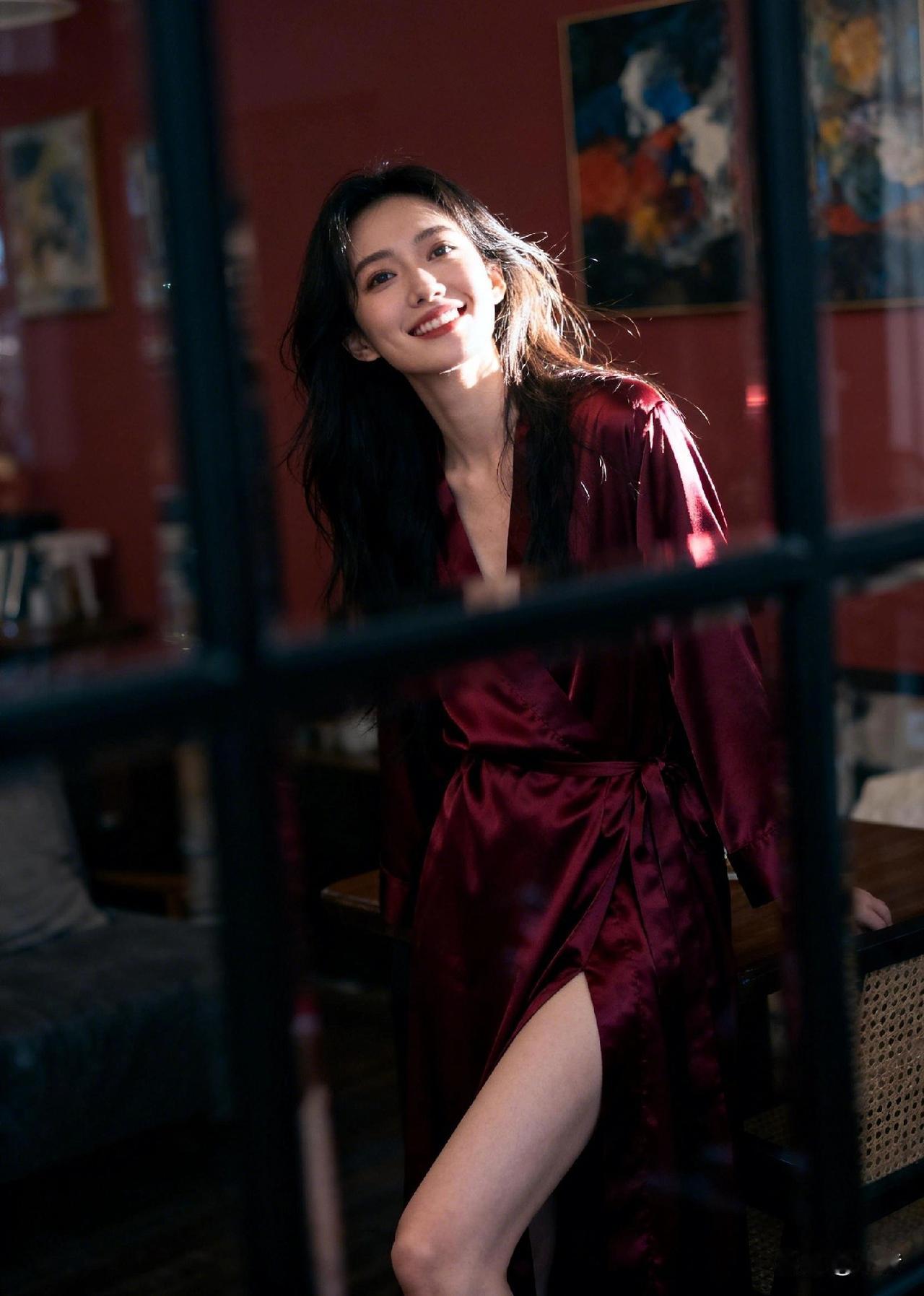 这氛围感简直绝了 当酒红睡袍成为暗夜里的独白 每一寸光都带着故事 女人如何穿出含蓄的性感?