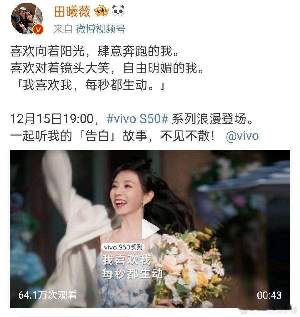 田曦薇官宣vivo啦!太美了!含金量很高的商务,恭喜薇薇
