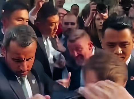马克龙和其随行人员,表情都这么夸张吗? 是不是看到如此热情壮观的场面,被震惊了啊? 随行工作人员是不是明显有点慌啊? 估计以前没有应对过这么多人的宏大场面吧!