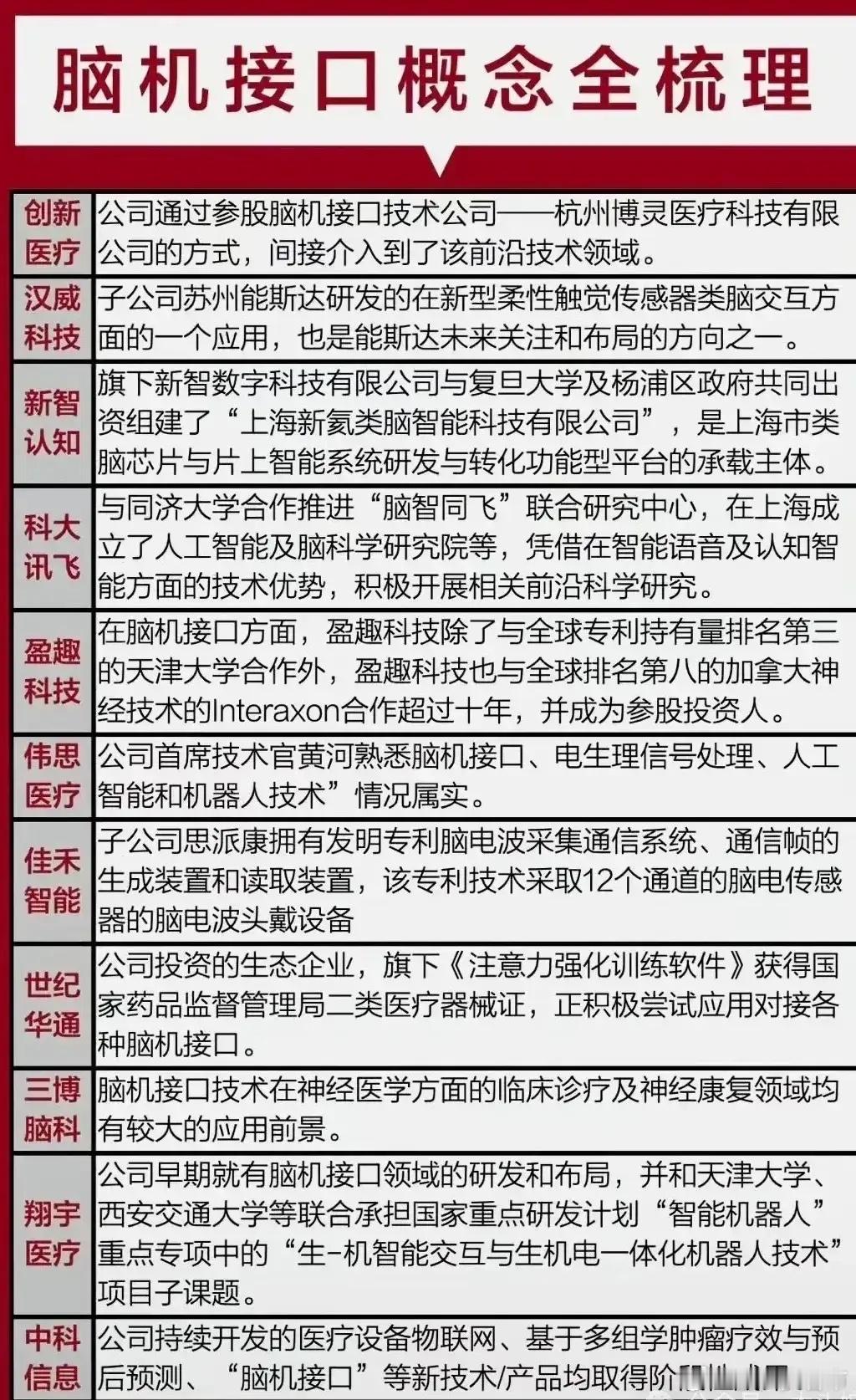 国内高校与医院联合开展的脑机接口临床试验取得重大突破,32例截瘫患者通过介入式或非侵入式技术,全部实现精准脑控抓握动作。试验采用高分辨率信号采集与AI解码技术,信号准确率超90%,患者康复训练周期显著缩短,标志着我国脑机接口临床转化迈入实用阶段。此次成果凸显我国脑机接口技术从科研走向临床的关键跨越,核心指标达国际先进水平,破解了截瘫患者运动功能重建的临床难题。技术突破叠加七部门产业支持政策,推动医疗康复、神经工程等领域加速发展,既满足残障群体康复需求,也为脑机接口商业化打开广阔空间,带动上下游产业链协同升级。脑机接口上市公司1. 三博脑科(301293):参与介入式脑机接口临床试验,临床转化经验丰富;2. 汉威科技(300007):柔性触觉传感器为设备提供核心信号采集支持;3. 新松机器人(300024):脑控机器人落地康复场景,商业化进度领先;4. 翔宇医疗(688626):康复训练系统与脑机接口技术深度融合。