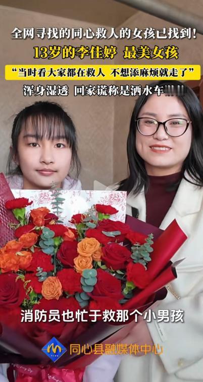 宁夏下冰窟救人的女孩正脸照曝光!小姑娘不仅长的眉清目秀的,说话也是井井有条。在回忆当时为什么默默的离开时,她很淡定的说:当时看到大家都在救人,不想再给大家添麻烦了,就走了。   一张正脸照的曝光,让宁夏那位勇救冰窟男童的女孩走进了更多人的视野。   照片里的少女眉清目秀,眉宇间既有同龄人少有的沉静,又透着一股藏不住的英气,网友们纷纷留言,感叹这是从骨子里透出的美好模样。   随着照片的传播,这个名叫李佳婷的13岁初一学生,用一场惊心动魄的救援,在寒冷的冬日里点燃了无数人心中的暖流。   李佳婷的家在宁夏,冬日的冰湖本是寂静的场景,却因一场意外变得紧张。   那天,她路过结冰的湖面时,突然发现一名男童不慎掉入冰窟,冰冷的湖水瞬间将孩子包围,情况危急。   没有丝毫犹豫,这个刚上初一的小姑娘立刻停下脚步,脑子里只有一个念头:必须救下那个小弟弟。   她留意到自己体重较轻,冰层或许能承受,便主动站了出来,在周围人的注视下,迅速捡起身边的管子伸向落水男童。   救援过程远比想象中凶险,脚下的冰层随时可能破裂,李佳婷在递管子的瞬间不慎滑落水中,冰冷的湖水让她打了个寒颤,但她没有松手,反而死死攥住管子,生怕一松手就会让男童失去获救的希望。   岸边的大人们见状纷纷上前帮忙,众人合力之下,李佳婷和落水男童最终都被成功拉上岸。   浑身湿透的她没有多做停留,也没有向任何人提及自己的名字,只是默默离开了现场,不愿给忙碌的救援者增添额外负担。   回到家后,李佳婷的父亲见她浑身湿透,连忙询问情况,她只是轻描淡写地说“被洒水车淋湿了”,对救人的事情只字未提。   后来大家才知道,这个勇敢的小姑娘并非不害怕,她只是不想让父母为自己担心,更没有想过要通过这件事获得什么表扬。   在她看来,救人只是出于本能,看到小弟弟身处险境,自己不能袖手旁观。   一直以来,不少人都觉得“孩子太小不懂事”,但李佳婷用实际行动打破了这种固有认知。   13岁的年纪,本是需要被呵护的阶段,她却能在危险面前挺身而出,用纯粹的善意化解危机。   她救人的动机格外简单,没有半点私心杂念,满是赤诚之心,而这份勇气的背后,是她对消防员的崇拜——心里有光的孩子,总能在关键时刻做出温暖又勇敢的事。   事件曝光后,被救男童的母亲第一时间多方打听,终于找到了李佳婷的家。   一见到救命恩人,这位母亲便忍不住红了眼眶,紧紧抱住李佳婷,双手紧握不愿松开,激动的泪水止不住地往下流。   为了表达谢意,她还带来了酬金,却被李佳婷和父母婉言拒绝了。   这份朴实的善良让她十分感动,最终只能将带来的水果、羊羔肉和小羊羔强行留下,又送上一面锦旗,用最实在的方式表达对救命恩人的感激之情。   李佳婷的事迹很快传到了她所在的学校,学校领导特意上门慰问,详细了解了她救人的经过后,决定在全校同学面前对她进行公开表彰。   校方表示,李佳婷的行为是全体学生的榜样,她的勇敢和善良值得每一个人学习。   与此同时,相关部门也注意到了这个勇敢的小姑娘,正在为她申请见义勇为荣誉称号,正如大家所说,正义从不缺席,勇敢善良的孩子就该被好好嘉奖和守护。   幸运的是,经过检查,李佳婷的身体并没有大碍,让关心她的人松了一口气。   如今,李佳婷的故事还在继续传递,学校的表彰、相关部门的荣誉申请,都是对她勇敢行为的肯定。   而那些来自陌生人的点赞和祝福,更是让这份正能量不断扩散。   这个眉清目秀、说话有条理的小姑娘,用一场意外的救援,让我们看到了新时代少年的担当,也让我们相信,这个世界永远不缺温暖与勇敢。   今天的分享到这里就结束了,大家对此事有何看法,欢迎在评论区留言和讨论,感兴趣的可以点击头像加关注,我将每日更新优质内容,我们下期见。
