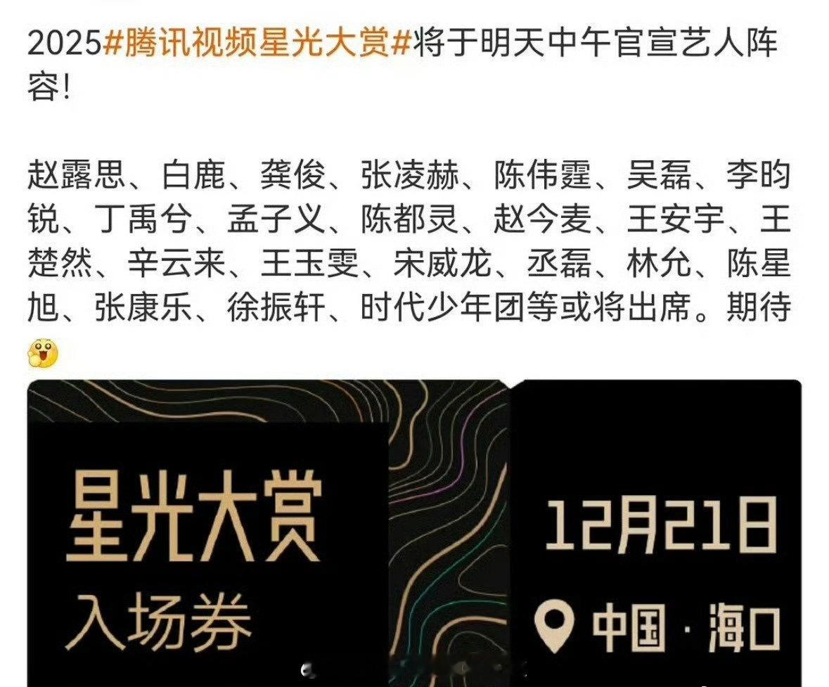 这次🐧星光大赏的名单,赵露思和白鹿两个95🌸谁能压轴星光大赏名单