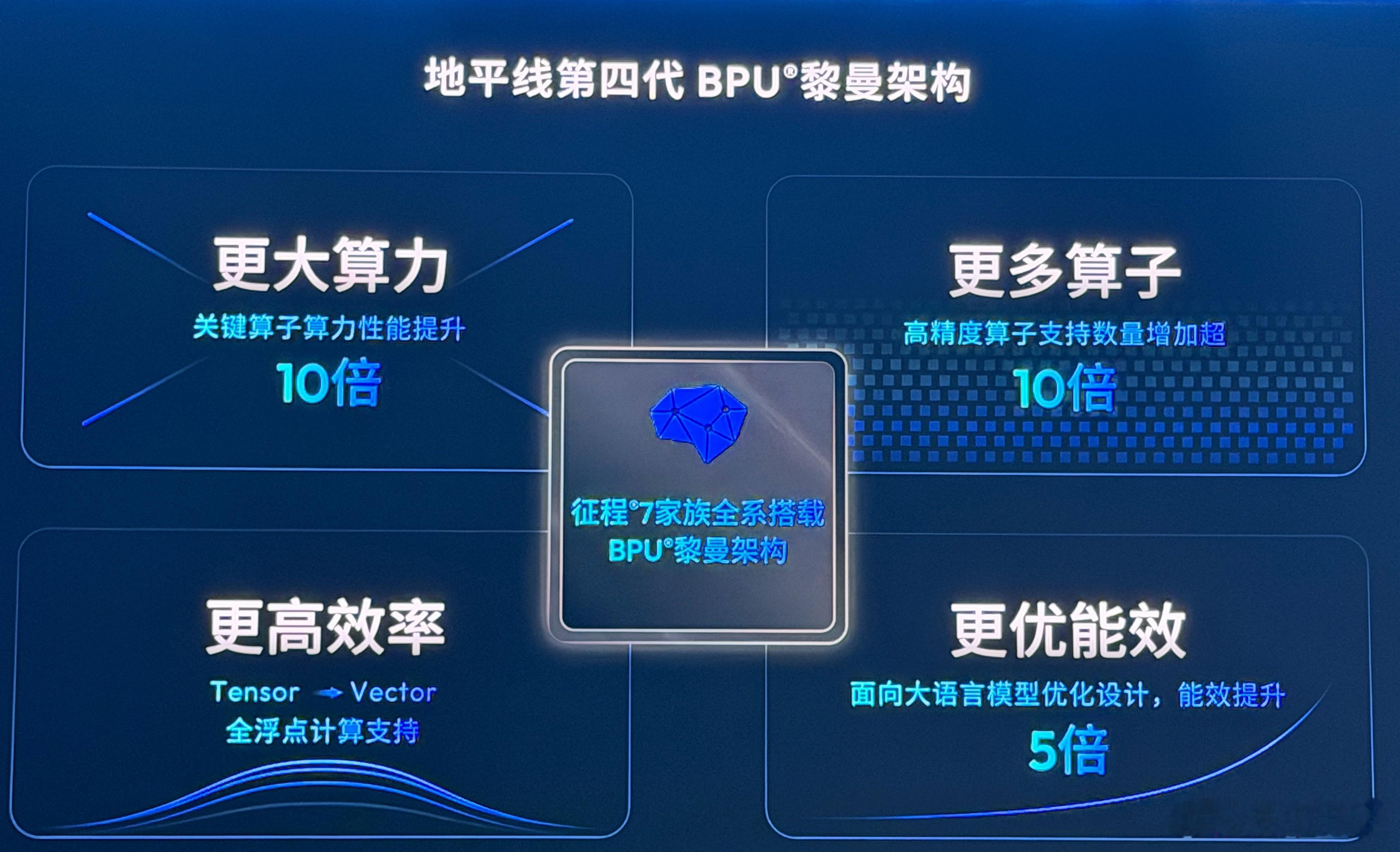 余凯博士正式发布地平线第四代BPU:Riemann 性能持续迭代!致敬数学家黎曼 Riemann!✅相比征程 6 芯片,算力/高精度算子直接翻10倍,全浮点计算效率拉满;•✅大模型能效还提了5倍,十年迭代直接把性能干到初代1000倍(摩尔定律才100倍)这波是把智驾芯片的性能天花板又往上抬了抬👍人人都是中国智驾合伙人2025地平线技术生态大会 深圳·深圳南山大道希尔顿花园酒店
