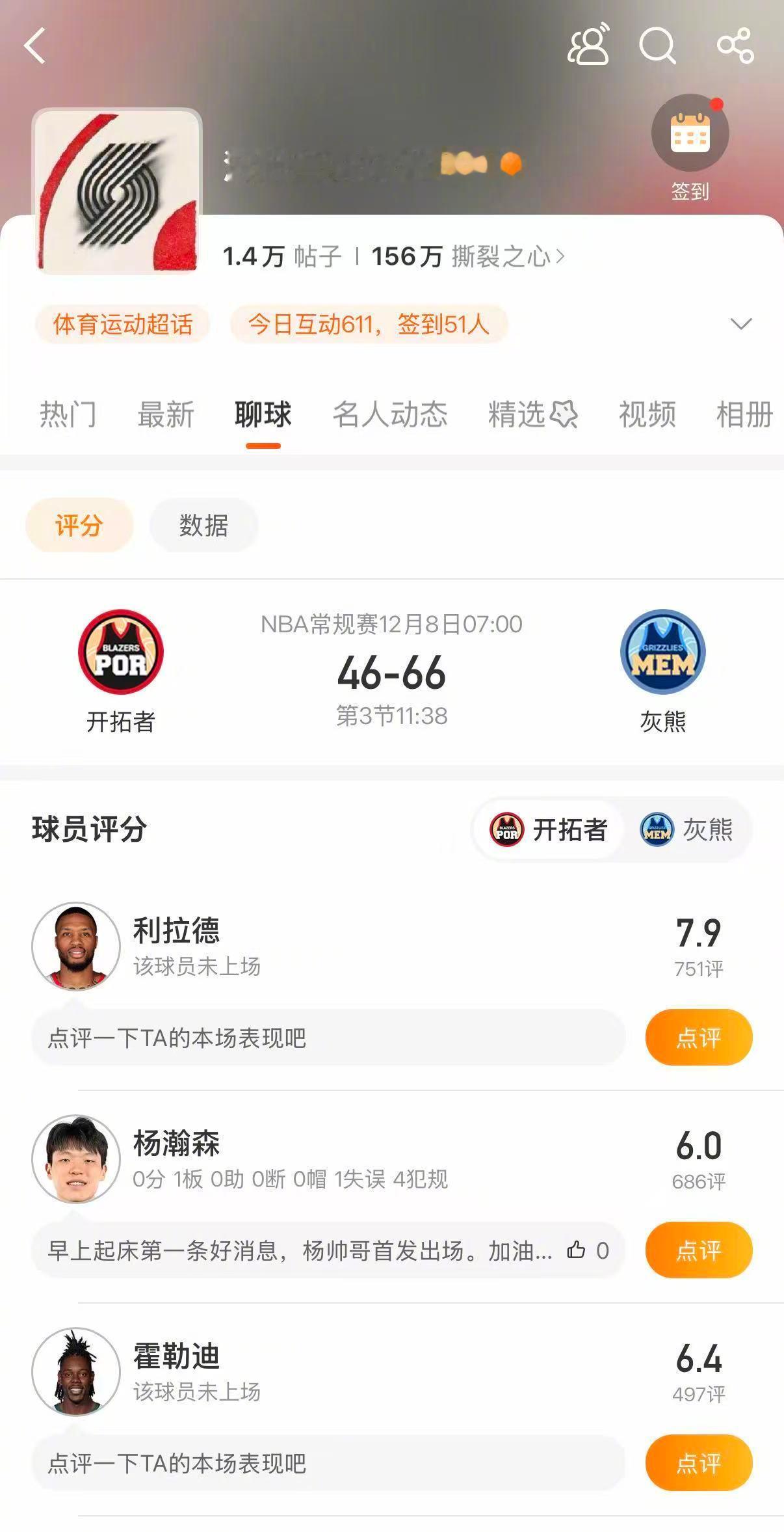杨瀚森8分钟4次犯规 半场结束,开拓者46-66灰熊。杨瀚森已领到四次犯规。进入球队波特兰开拓者孟菲斯灰熊 超话对球员表现进行评分吧!