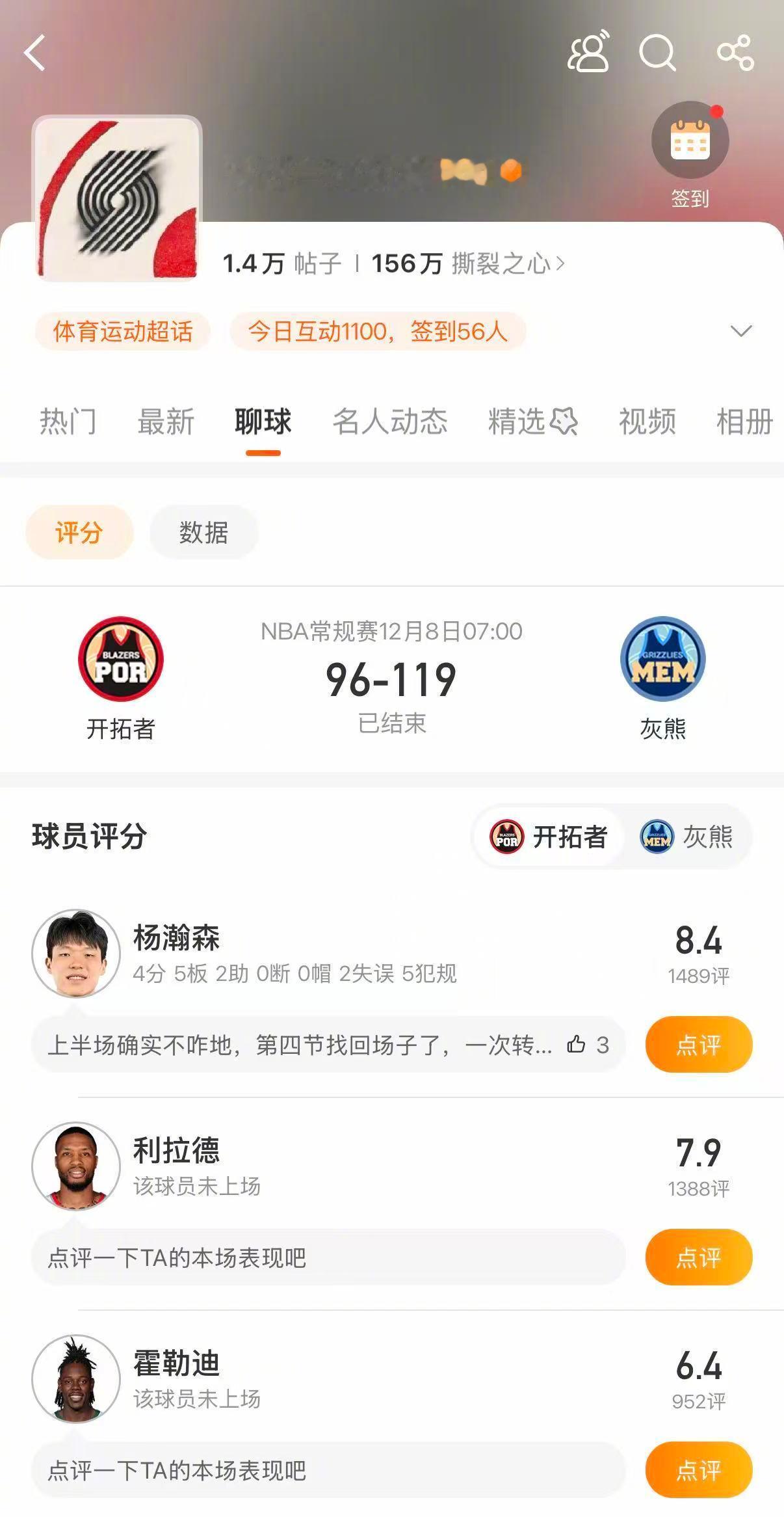 杨瀚森出场时间生涯新高开拓者客场96-119不敌灰熊。杨瀚森生涯首次首发出场,下半场有亮眼表现,共出场19分钟得到4分5篮板2助攻。灰熊方面,阿尔达马22分,波普16分。开拓者方面,格兰特21分,阿夫迪亚17分。进入球队超话波特兰开拓者孟菲斯灰熊 为球员表现评分吧!
