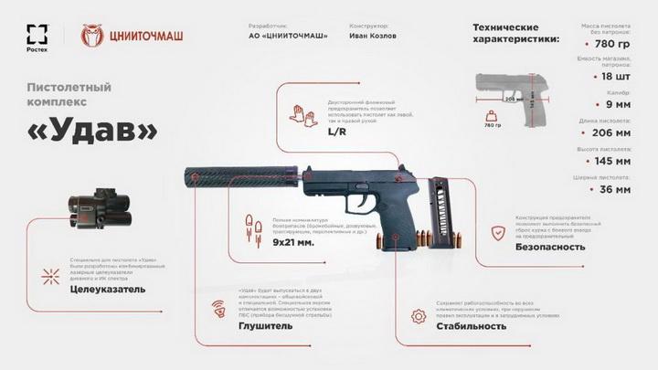 俄军新一代特种作战手枪蟒蛇,俄语Удав 英文UDAV 这个枪最大的不一样,就是子弹特别,比较大,9*21,穿透能力特别强 个头比较大 该手枪在–50至+70摄氏度的宽温度范围内稳定工作,客户的基本要求:枪管寿命——10000发射击,精度——R50,三连发10发——散布不超过3厘米,重量,基本——不超过800克,带消音器——不超过1100克。 瞄准范围 - 100 米。  双排弹药输出。弹匣容量 - 18 发  7N42  - 具有一个看起来像凿子的核心。 专为 BOAS打造的威力强大的穿甲弹和膨胀弹 ,这是这款新型手枪的主要优势,明确了该手枪“用于特殊工作”的定位。 9x21高威力弹药筒可击穿由现代多层凯夫拉材料或轻质钛合金制成的二级防弹衣。目标交战范围可达 100 m。