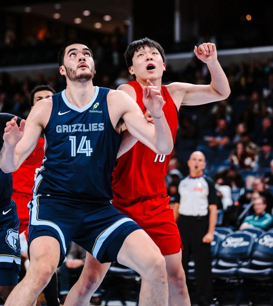 都是中国人!杨瀚森nba遇到老乡周志豪,背身单打暴扣,中国加拿大混血球员,小杨表现先抑后扬,开拓者生涯首次先发19分钟,拿到4分5板2助,老乡周志豪12分10板3助,皆大欢喜,比赛中,各为其主,其中,杨瀚森被对位的周志豪打到面部倒地,他没有领到犯规,周志豪多次表达对杨瀚森欣赏,并透露想带着姥爷回中国故乡寻根。