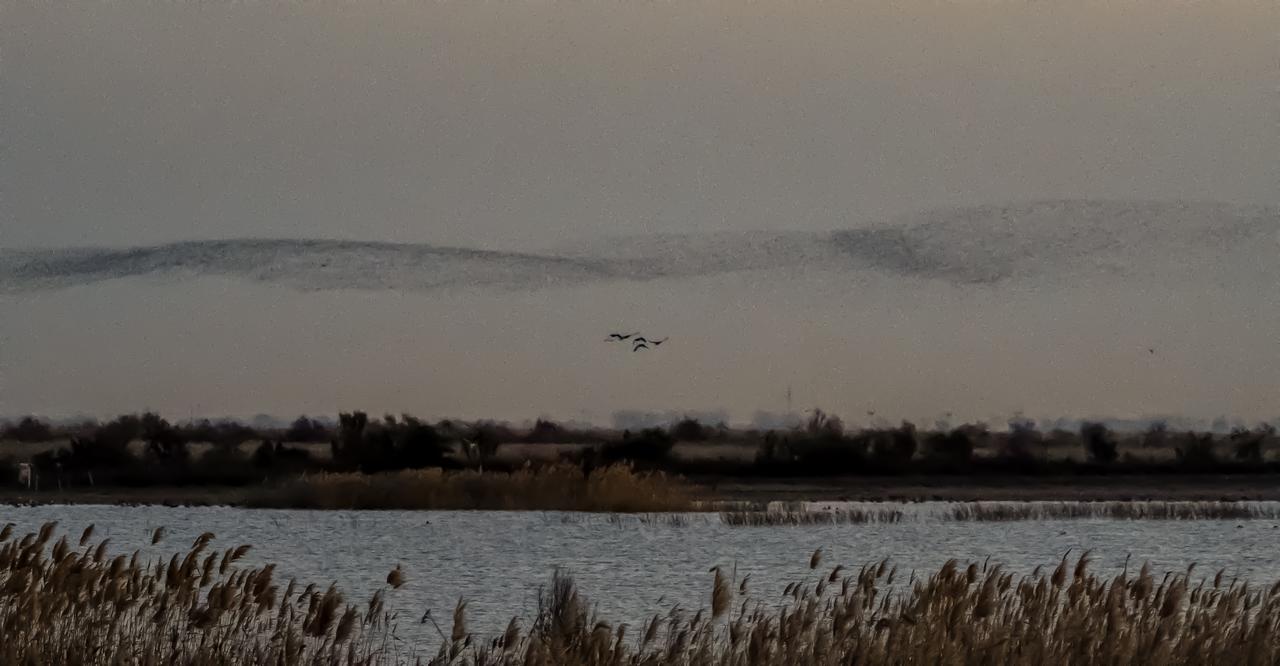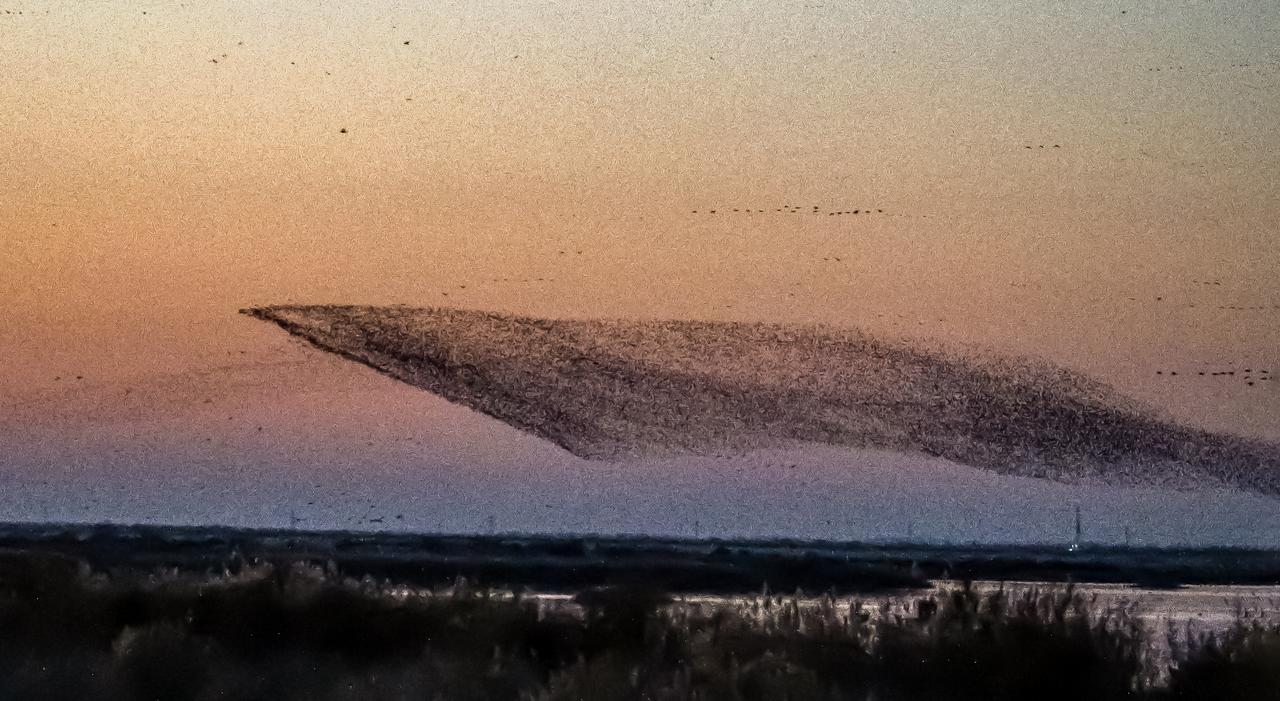 最近,东营湿地总能看到万鸟齐飞的场景,迁徙的鸟浪如同乌云般遮天盖地,像极了庄子笔下“其翼若垂天之云”的鲲鹏。 初冬的山东东营黄河三角洲湿地,总藏着意想不到的自然惊喜。 有位叫林的先生下班路上,就撞见了一辈子难忘的场景。 前方滩涂突然涌起一片“黑浪”,上百万只鸟儿同步振翅升空,瞬间遮天蔽日,那舒展的群形像极了庄子笔下“其翼若垂天之云”的鲲鹏,连空气里都裹着翅膀扇动的呼啸声,混着此起彼伏的鸟鸣,听得人心里发颤。 这不是偶然出现的景象,每年春秋迁徙季,尤其是冬季来临前,这样的“鸟浪”都会在黄河口上演。 来自北京的李先生一家特意赶过来,刚到湿地就遇上群鸟归巢,孩子兴奋得直拍手,李先生举着相机拍个不停,事后说这趟路没白跑,课本里的自然奇观,真见了才知道有多震撼。 站在观鸟点远远望去,鸟群的姿态千变万化。 刚起飞时像一团流动的乌云,被风一吹,突然散开成利剑模样直冲云霄,盘旋几圈后,又猛地收紧队形,凝成一个巨大的圆盘低空滑翔。 等它们俯冲落回滩涂,密密麻麻的身影像洒下一片会动的黑雪,脚爪踩在浅水里,漾开一圈圈细碎的涟漪,和水面倒映的芦苇影子叠在一起,美得让人挪不开眼。 有当地人说,看久了会觉得鸟浪中心像有股神秘的力量,牵引着万千鸟儿整齐划一,就像大自然在亲自指挥一场空中盛宴。 能撑起这么大规模的鸟浪,黄河三角洲有自己的底气。 黄河奔涌万里入海时,携带着大量泥沙造出新的滩涂,这里鱼虾成群,碱蓬和芦苇长得茂盛,成了候鸟迁徙路上最可靠的“补给站”。 加上湿地里沼泽、河滩交错,给鸟儿提供了躲避天敌的好地方。 更重要的是,像鸻鹬这类水鸟有集群生存的智慧,成千上万只聚在一起,既能降低被猛禽捕食的风险,又能提高觅食效率,“鸟浪”就是这样自然形成的。 不过再美的奇观,也得用心呵护,湿地里的指示牌写得清楚,观鸟时要保持安静,不能大声喧哗,不然容易惊扰到觅食的鸟儿。 也有人想给鸟儿喂点面包屑,其实这是好心办坏事,人工投喂会改变它们的自然习性,还可能让鸟儿生病。 拍照的游客也得注意,千万别开闪光灯,强光会伤害鸟儿的眼睛。 这些规矩不是束缚,而是让人和鸟都能舒服相处的前提。 现在黄河三角洲已经成了“鸟类国际机场”,400多种鸟儿在这里歇脚、繁殖,光是观鸟路线就有好几条,沿着滨海大道能看鹬类和鸥类,走东八路又能见到大天鹅和灰鹤。 但这一切的前提,是这片湿地的生态能一直保持下去。 当地的护鸟员说,这些年通过退耕还湿、治理污染,来的鸟儿一年比一年多。 这也提醒着大家,环境维护不是一句空话,要是湿地被破坏,鱼虾变少,再壮观的鸟浪也会消失。 我们都希望这样的奇观能一直存在,让后来人也有机会亲眼看看,庄子笔下的鲲鹏,原来真的会在黄河口的天空展翅。