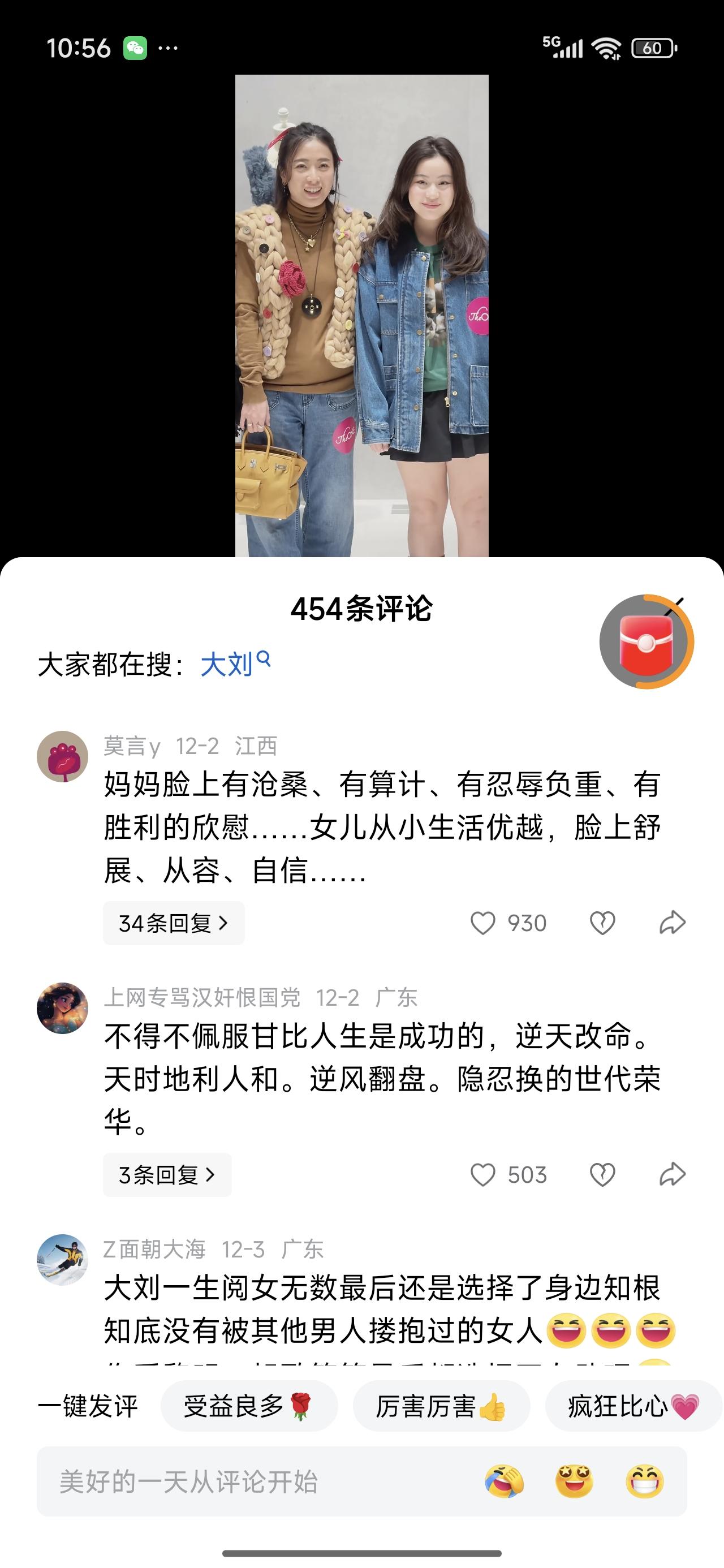 看到甘比为女儿站台,她之前所做的一切都能理解了! 有人说妈妈眼里有算计,有沧桑,有隐忍负重,有胜利的欣慰,女儿从小生活优越,脸上舒展。从容,自信。。。 是啊,哪个妈妈不为儿女打算?如果早几年知道找个富人家嫁了,也不会如今过这样苦哈哈的生活! 拗不过自己的本心啊!给个荒淫的老头儿给到我,恐怕还是不能接受。就是又穷认知又低啊! 为啥说跨越阶层难,这第一关就过不了。嫌人家老,人家都没嫌我穷呢? 上年纪了,明白了一切,悔之晚矣!空悲切,白了少年头。