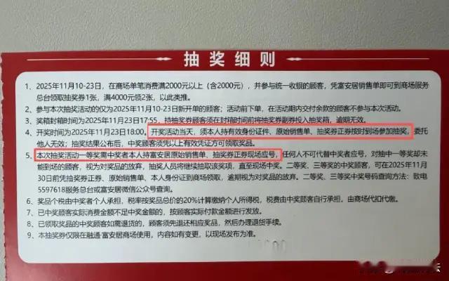 广西南宁一位女子,花费13万元在当地建材市场购买家具,商家为了表示促销诚意,慷慨赠送她50多张抽奖券。满怀期待的她,在抽奖现场幸运地抽中了价值1万元的一等奖,原本应该是欢天喜地的领奖时刻,然而一场看似简单的兑奖规则,却让她与大奖失之交臂。主持人突然宣布,领奖者必须在1分钟内现场出示纸质正券,否则视为放弃。女子因一时疏忽,未携带纸质抽奖券,虽然出示了抽奖券照片、身份证和购买凭证,但依然被现场工作人员拒绝兑奖。眼睁睁看着大奖如梦幻般从指缝中溜走,她的心情跌入谷底。这件事不仅让人唏嘘,更引发了公众对抽奖活动公平性和规则合理性的深思。毕竟,现代社会手机拍照和电子证据普及,为什么仅限于严格的纸质券?商家的“硬性规定”难免让人觉得刻板又不近人情。这背后,折射出的是促销活动设计与消费者权益保护间的矛盾。对消费者来说,花费巨资购买商品本应享受合理的权益保障和人性化服务,可这样严苛的兑奖规则,则容易引发公众的不满与质疑。网友热议纷纷:“商家是不是故意设置难关,避免支付奖金?”“抽奖活动搞得这么复杂,是在考消费者的细心,还是商业套路?”“一卡难求的纸质券真的还靠谱吗?数字时代该与时俱进。”同时,这件事给我们提了醒:参与任何促销抽奖活动,务必仔细了解并严格遵守规则,切莫因一时疏忽错失权益。但归根结底,商家在设计活动流程时,也应兼顾灵活性与公平性,构建更人性化的消费环境,才能真正赢得顾客信赖与口碑。你有没有遇过类似的“夺大奖”却因规则困扰而遗憾的经历?你怎么看商家的兑奖标准是严谨还是“刁难”?欢迎留言分享你的故事和看法,让我们一起为消费者权益发声,推动更透明、更公平的市场环境。万家丽家居抽奖 武鸣家具活动