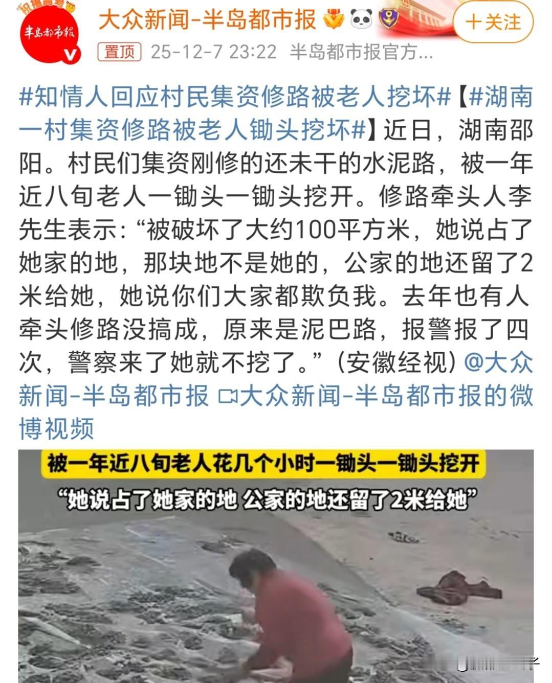 湖南一个村修村里的路,碰上这80多岁的老赖了,非说村里修的路占了她家的地。 刚铺上的水泥还没干,她就拿锄头给刨了,警察来了4次也没用,这么大年龄,碰也碰不得,抓了她谁养着呀? 对付这种老赖还得是老办法才管用,通知她的子女,最好是儿子,最好他儿子已经有小孩了。 就直接说如果老人再破坏公物,就会变成老赖,未来会影响孙子孙女的升学、考公务员和事业单位、参军。 放心吧,这老太太的儿媳妇一晚上就能把她给捋顺了,百试百灵。如果是只有女儿,方法一样,闺女收拾妈也是一样的。
