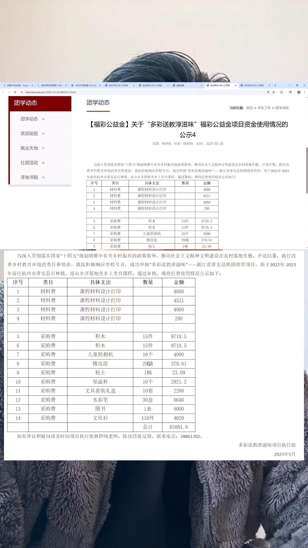 杭州师范大学,不仅福彩受助名单造假,经费使用明细公示也涉嫌造假。经费使用明细大费周折造假,难道只是为了审核规范吗?在杭师大核实发布调查情况后,曝光的博主发出学校官网曾发布的经费使用公示情况,虽然这些已被官网已删除,但提前保存下来了。