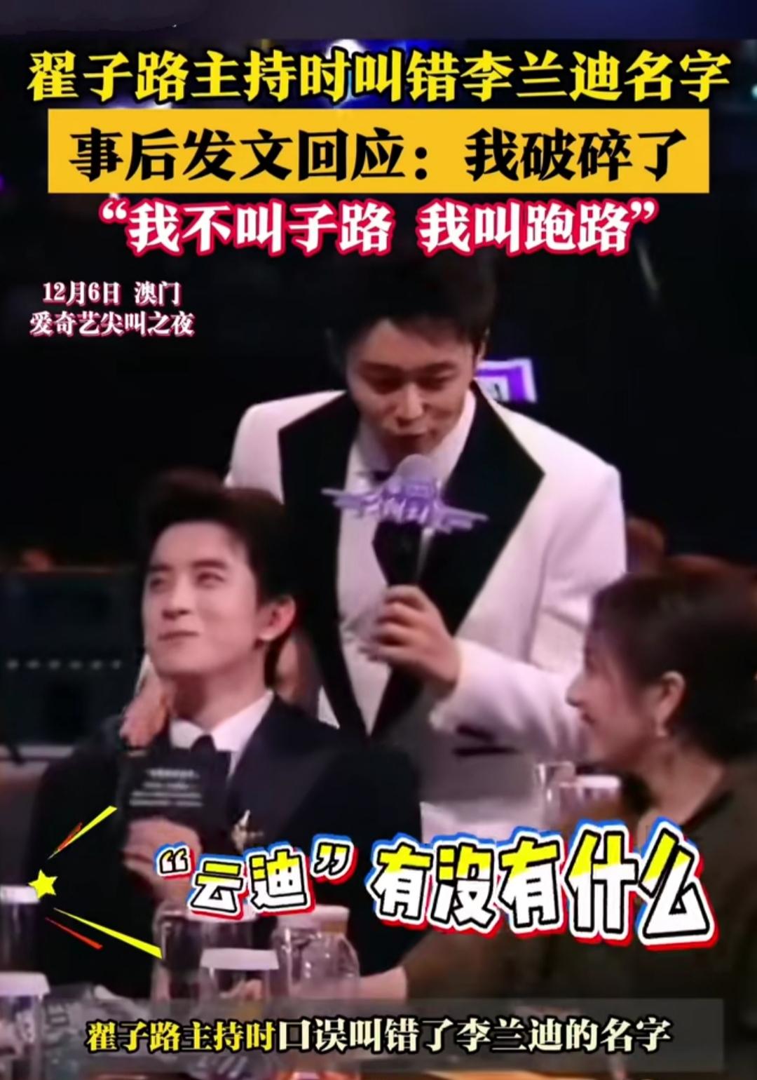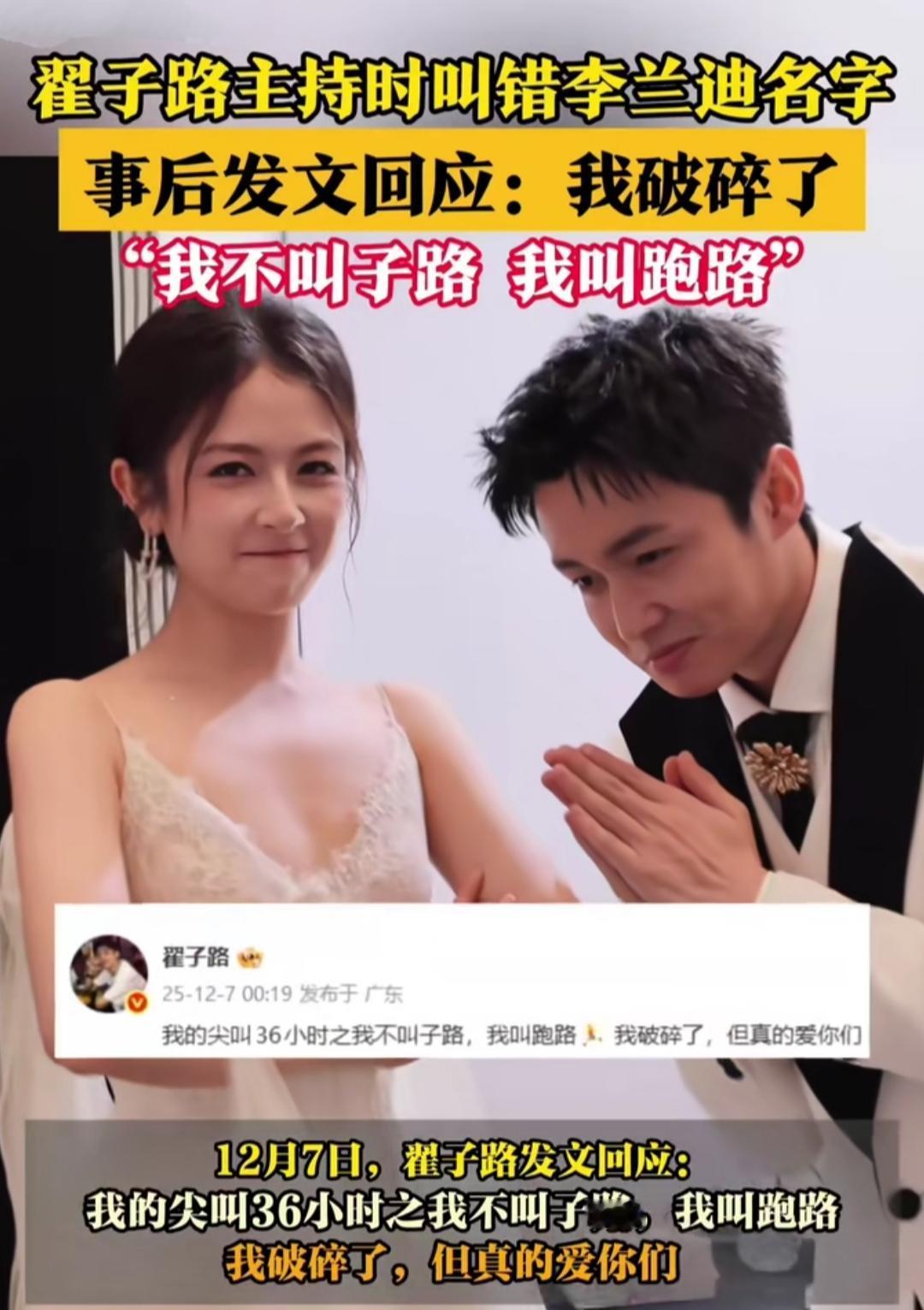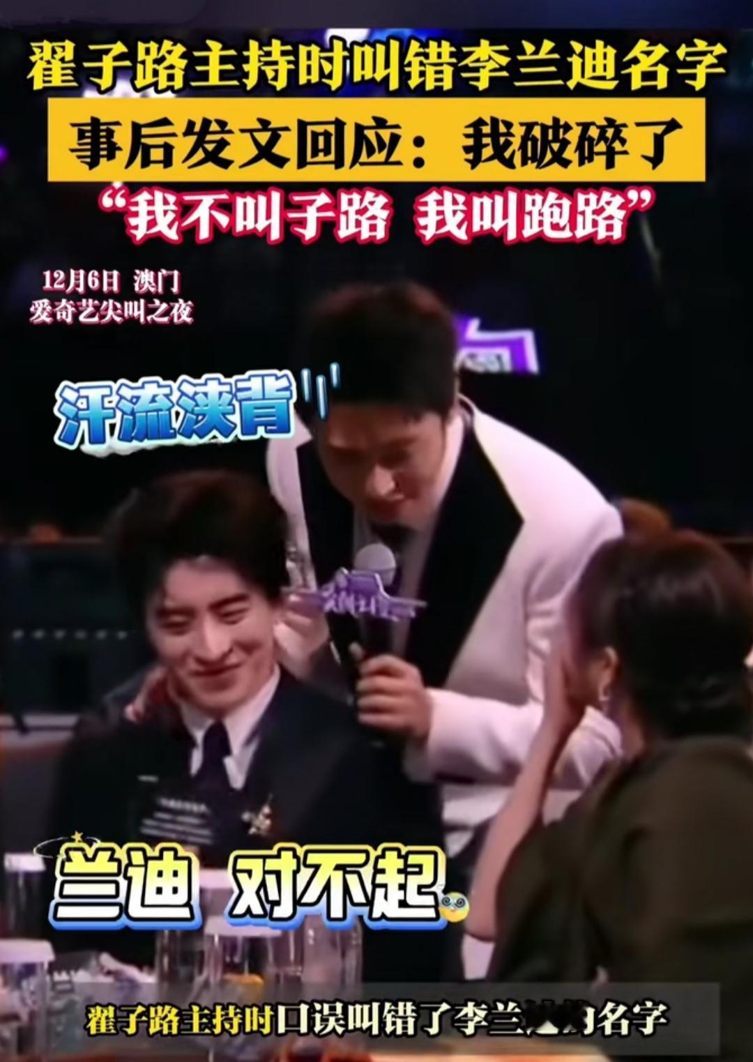 主持现场突然卡壳叫错人名,全网都在刷截图调侃,换谁不得想找个地缝钻进去?翟子路这波失误,简直戳中了所有社恐和职场人的痛点。 昨晚的活动上,翟子路主持时把李兰迪叫错名字,瞬间场面有点安静,他自己也立马愣住了。本来是个小失误,没想到直接冲上热搜,网友们议论纷纷,有人笑他“紧张到大脑宕机”。 但让人没想到的是,他没藏着掖着,转头就发文自嘲“破碎了,我不叫子路,我叫跑路”。这番接地气的回应,瞬间把尴尬化解,网友纷纷转粉,夸他情商高、不矫情。 其实谁还没犯过类似的错呢?开会叫错领导名字、当众念错客户信息、上台发言忘词,那种脸红心跳、恨不得立刻溜走的感觉,过来人都懂。 比起硬扛或辩解,坦然面对反而更圈好感。毕竟人非圣贤,犯错不可怕,敢正视、会化解,才是真的厉害。生活里的小尴尬,换个心态看,反而成了拉近距离的小插曲。