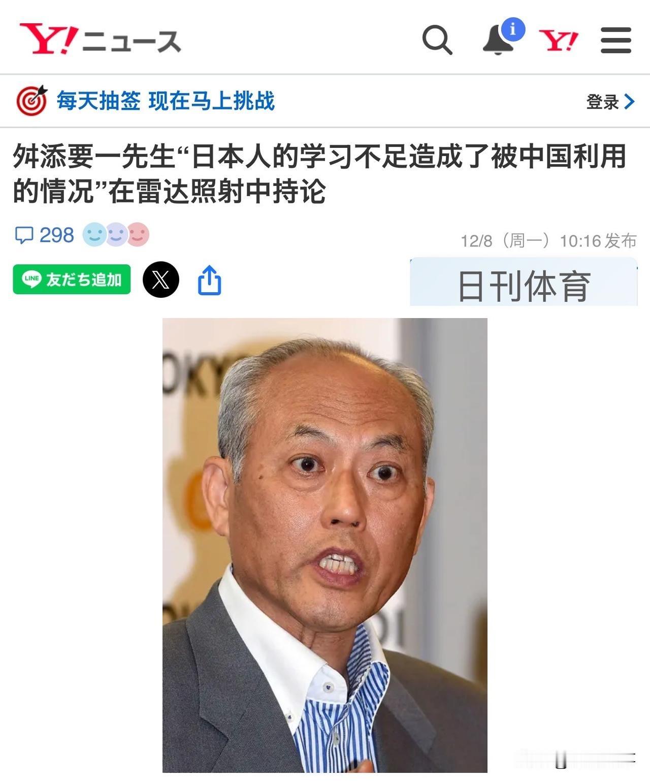 急眼了!日本表态! 来自雅虎新闻网8日消息,日本国际问题专家舛添要一在社交媒体上表示,“现在的中日关系连军事冲突都孕育出来了,是危险的情况。日本人因缺乏对中国的学习和正确认知,不知道战后台湾问题。” 舛添要一进一步指出,“如果中日紧张局势加剧,就必须增加防御费进行准备。美国要求同盟国增加军事费用,北约将GDP比提高到5%,韩国提高到3.5%。日本也要求增加防卫费,在中日对立中,微笑的可能是美国。”