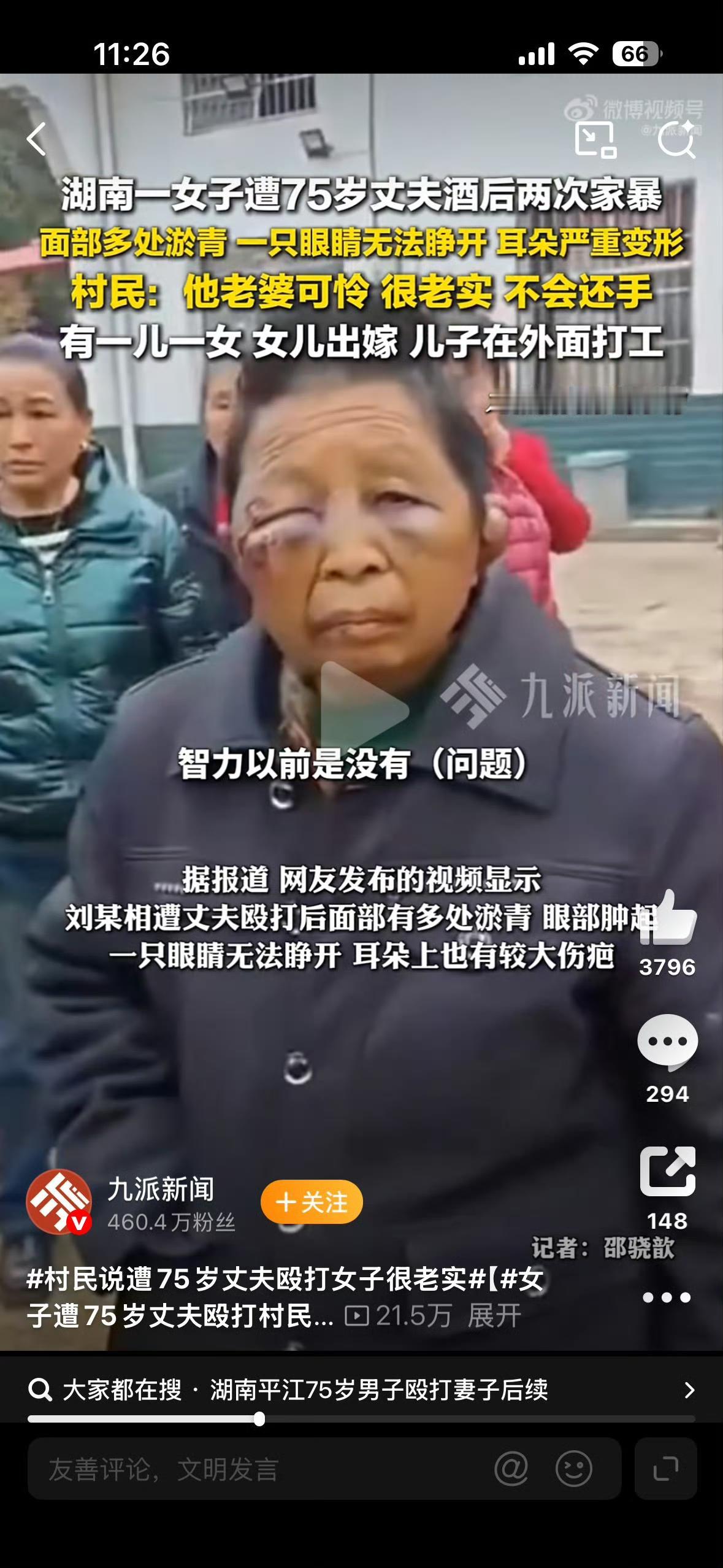 湖南平江梅仙镇白狄村,75岁的陈某明又借酒发疯,把老伴刘某相当成“出气沙包”。12月2号到3号,两天里两次拳打脚踢,老太太面部青一块紫一块,左眼肿得睁不开,耳朵还留着旧疤。法医鉴定:轻微伤,可对75岁的身体来说,这一顿打就是“要命”。 视频一上网,网友炸了:这都什么年代,还打老婆?村民却见怪不怪:“老陈爱喝两口,手痒了就打人,村里人少,也没人管。”儿子在外地打工,女儿体弱出嫁,家里就剩老俩口,打也喊不到人救。 这回公安没再“和稀泥”,通报一出,陈某明直接被带走,案件正在办理。大家最关心的是后续:老太太住哪?医药费谁出?能不能给老人一张“护身符”? 律师说:家暴不是家务事,75岁也能申请人身保护令;村里、派出所、妇联得轮流上门,别让“没人管”再成施暴的挡箭牌。 一句话:酒不是家暴的理由,年龄也不是免罪金牌。希望刘某相早日康复,更希望每个“她”在村里喊得应、叫得动,让巴掌落不下去。