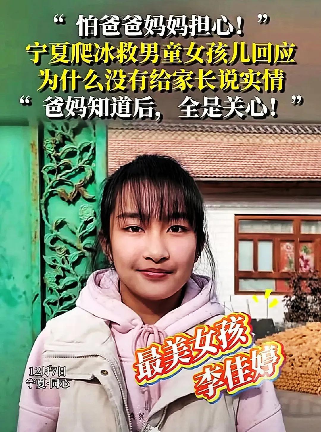 宁夏13岁女孩太牛了! 谁能想到,救了人还“撒谎”的孩子,能让人这么感动!宁夏13岁的李佳婷,看到4岁男童身处危险,想都没想就冲上去把人救了下来。 怕爸妈担心,她没提救人的事,回家只说衣服是被洒水车淋湿的,换了衣服就跟没事人一样。 后来男童家长带着酬金、水果和羊羔肉上门道谢,李佳婷爸妈婉拒了酬金,只收下了心意。 这姑娘长得漂亮,心更善!小小年纪既有挺身而出的勇气,又有关心父母的懂事,这样的孩子谁不夸一句好? 现在这样有担当的少年,真该让更多人知道!