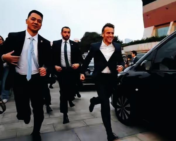 马克龙这是冲起来啊! 这是着急跑着去干嘛呢? 这满脸的笑容是不是很开心啊? 是不
