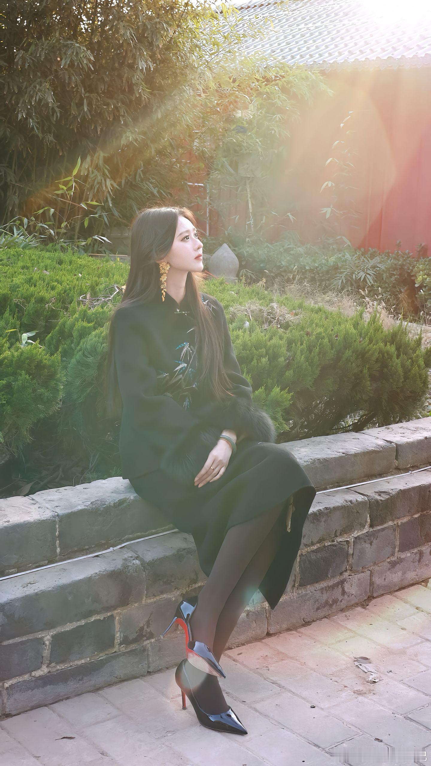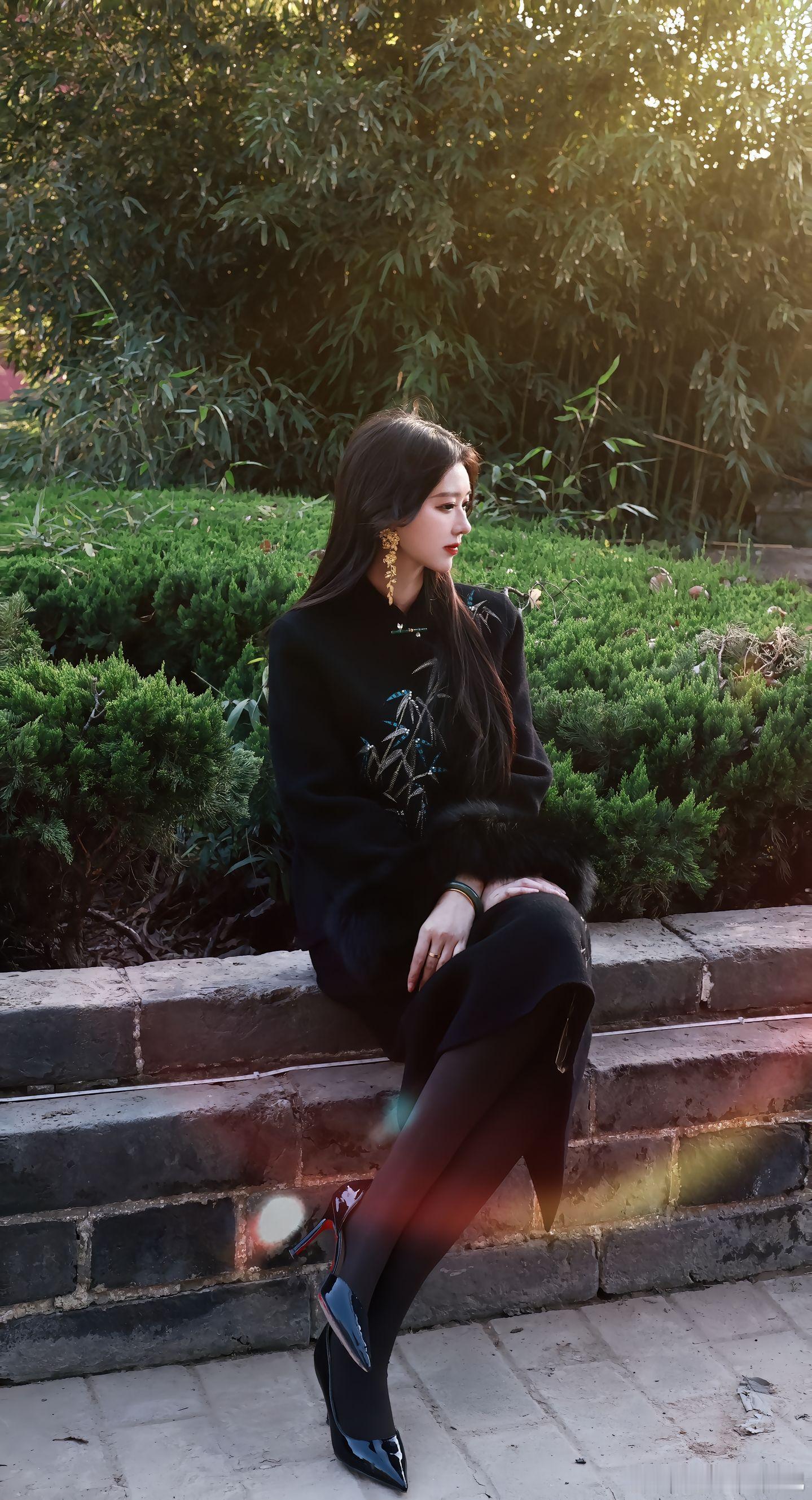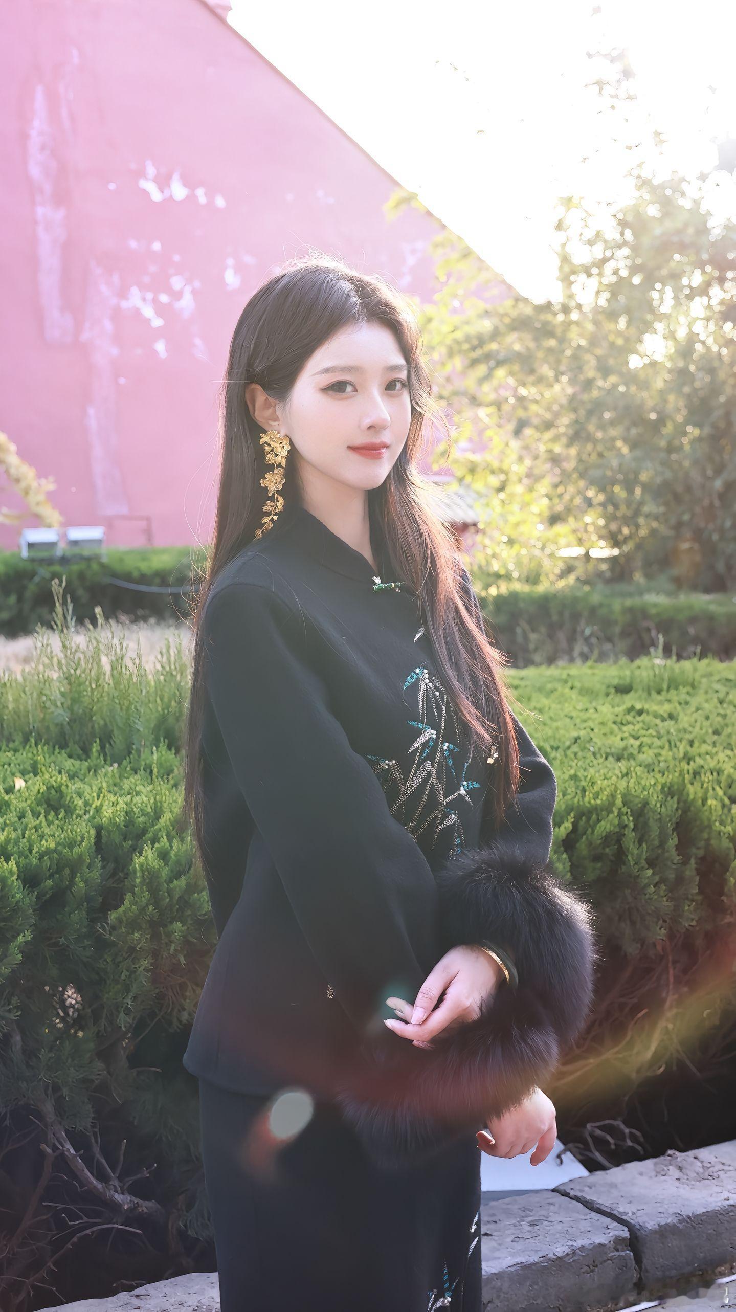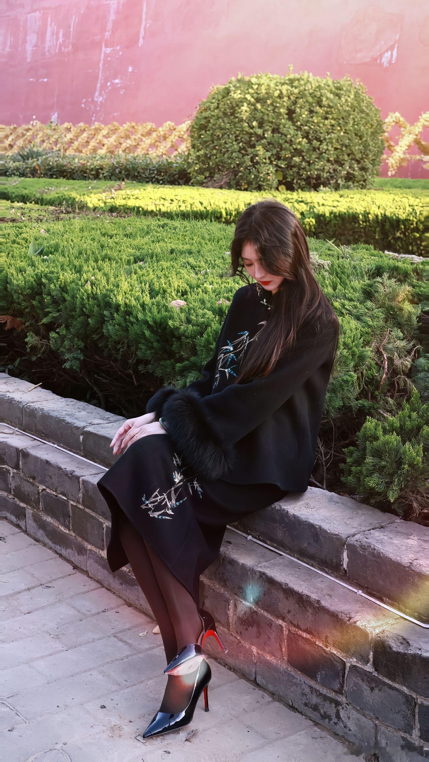 少女写真 黑衣配刺绣,凸显冬日魅力美女绘梦长廊