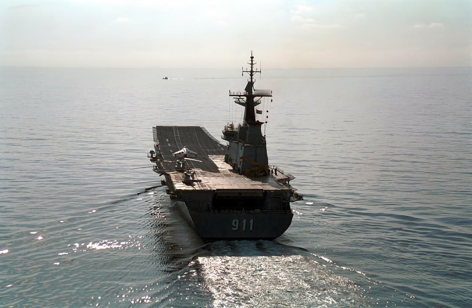 泰国“查克里·纳吕贝特”号航空母舰“查克里·纳吕贝特”号航空母舰是泰国海军目前唯一的航空母舰,从1997年服役至今。该舰由西班牙巴赞造船厂建造,与“阿斯图里亚斯亲王”号航空母舰为同级舰。“查克里·纳吕贝特”号航空母舰借鉴了西班牙“阿斯图里亚斯亲王”号航空母舰的设计经验,但外形上更美观。武器装备:3座“西北风”防空导弹发射装置、2挺12.7毫米机枪。动力装置:2具LM2500燃气轮机、2具TB83柴油发动机。1992年3月,泰国海军和西班牙巴赞造船厂签订了“查克里·纳吕贝特”号航空母舰的建造合同,1994年6月开始建造,1996年1月下水,1997年3月移交给泰国海军。随后,在西班牙海军的帮助下,泰国海军在西班牙罗塔基地进行了4个月的舰员培训。与“阿斯图里亚斯亲王”号航空母舰相比,“查克里·纳吕贝特”号航空母舰的柱状桅紧靠烟囱,岛式上层建筑有所延长。该舰的飞行甲板也采用了“滑跃”式设计方案,甲板首部斜坡上翘12度。为了提高耐波性,安装了展翼型防摇龙骨,并装设两对液压自动控制的减摇鳍。与“阿斯图里亚斯亲王”号航空母舰相比,“查克里·纳吕贝特”号航空母舰在多项技术性能上有了显著的提高。该舰的满载排水量比“阿斯图里亚斯亲王”号航空母舰缩小了近三分之一,而载机量仅减少四分之一,单位排水量的载机率有所提高。|