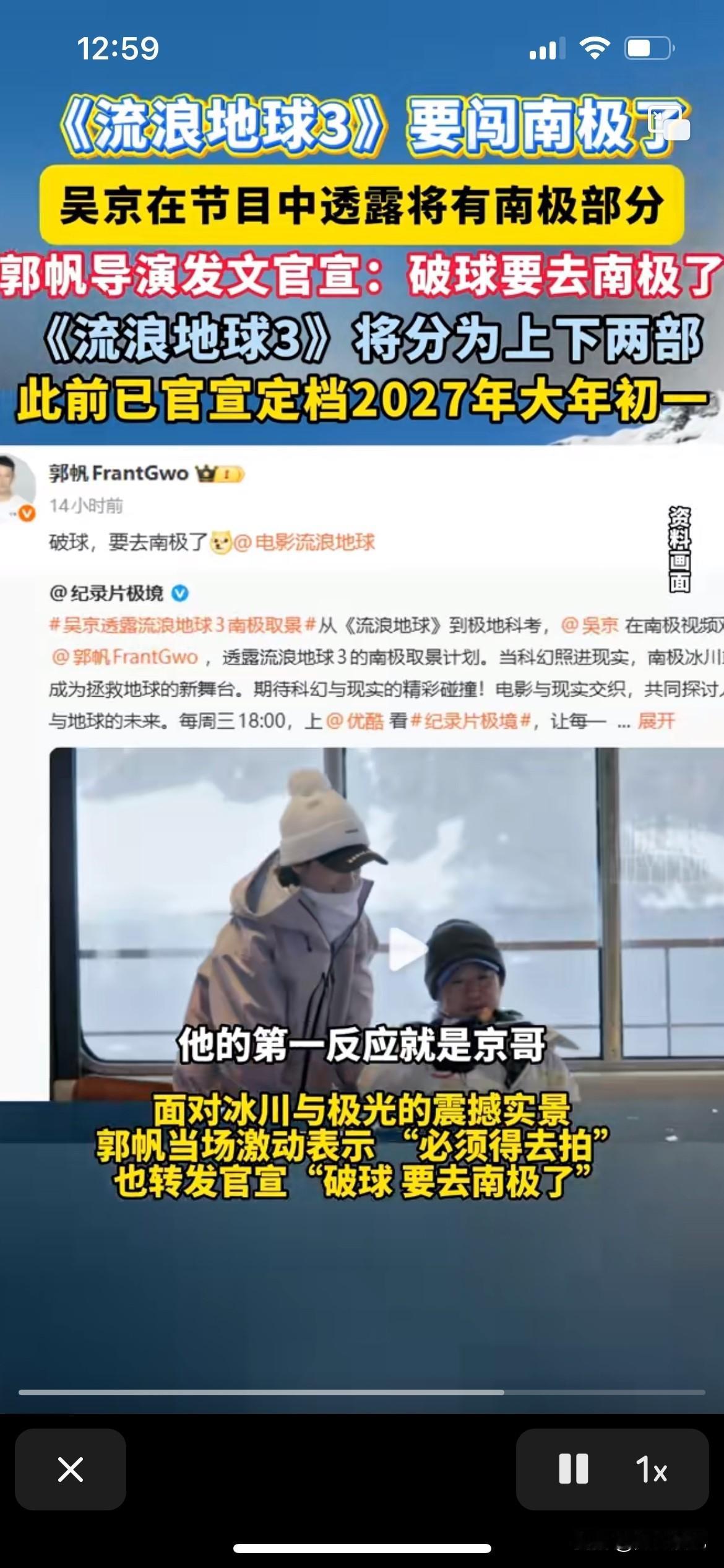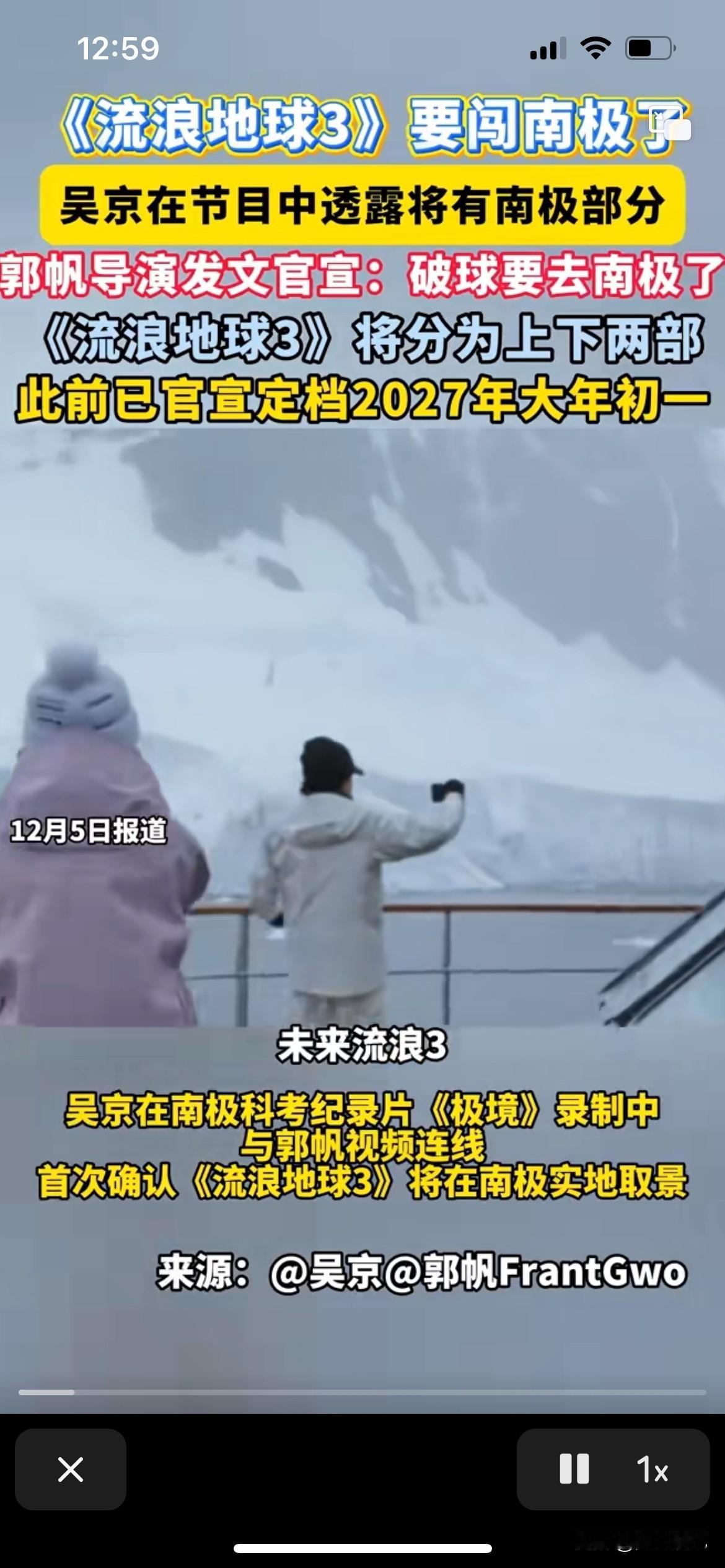 吴京导演为了电影效果都是亲力亲为的,需要拍摄南极,自己就跟导演说要亲自去体验一下,要不然拍不出效果,这个就是敬业精神。 南极这种极端环境,特效和实拍的难度肯定不低,估计又会是一波 中国科幻工业升级的展示,期待大片的完成。 很多人都是无脑言论吴京老师,大家的眼睛是雪亮的,吴京兴起了硬汉时代,带动了爱国热情和硬汉形象,每部电影都大爆,期待京哥新电影。