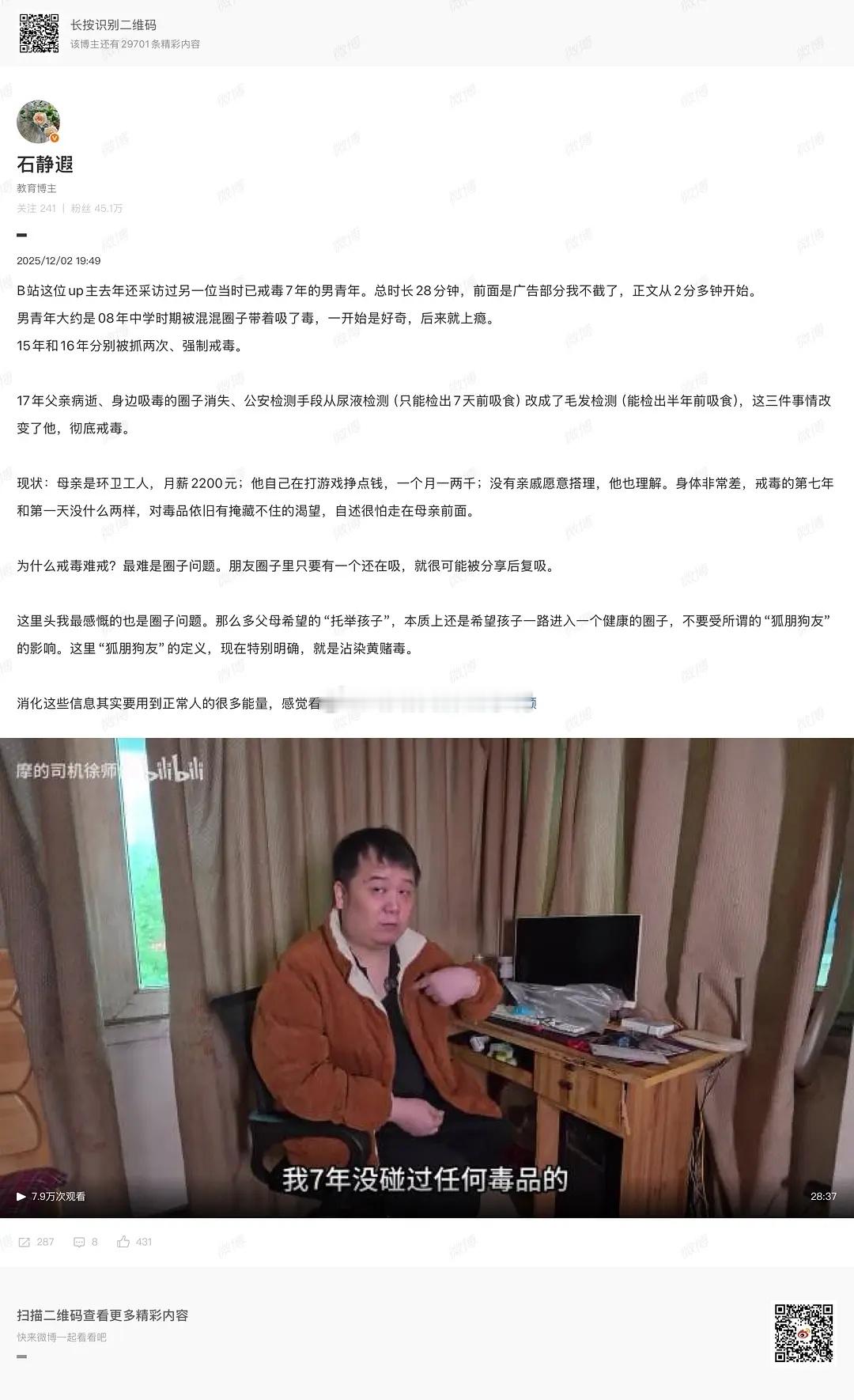 戒毒人讲诉自身经历的采访