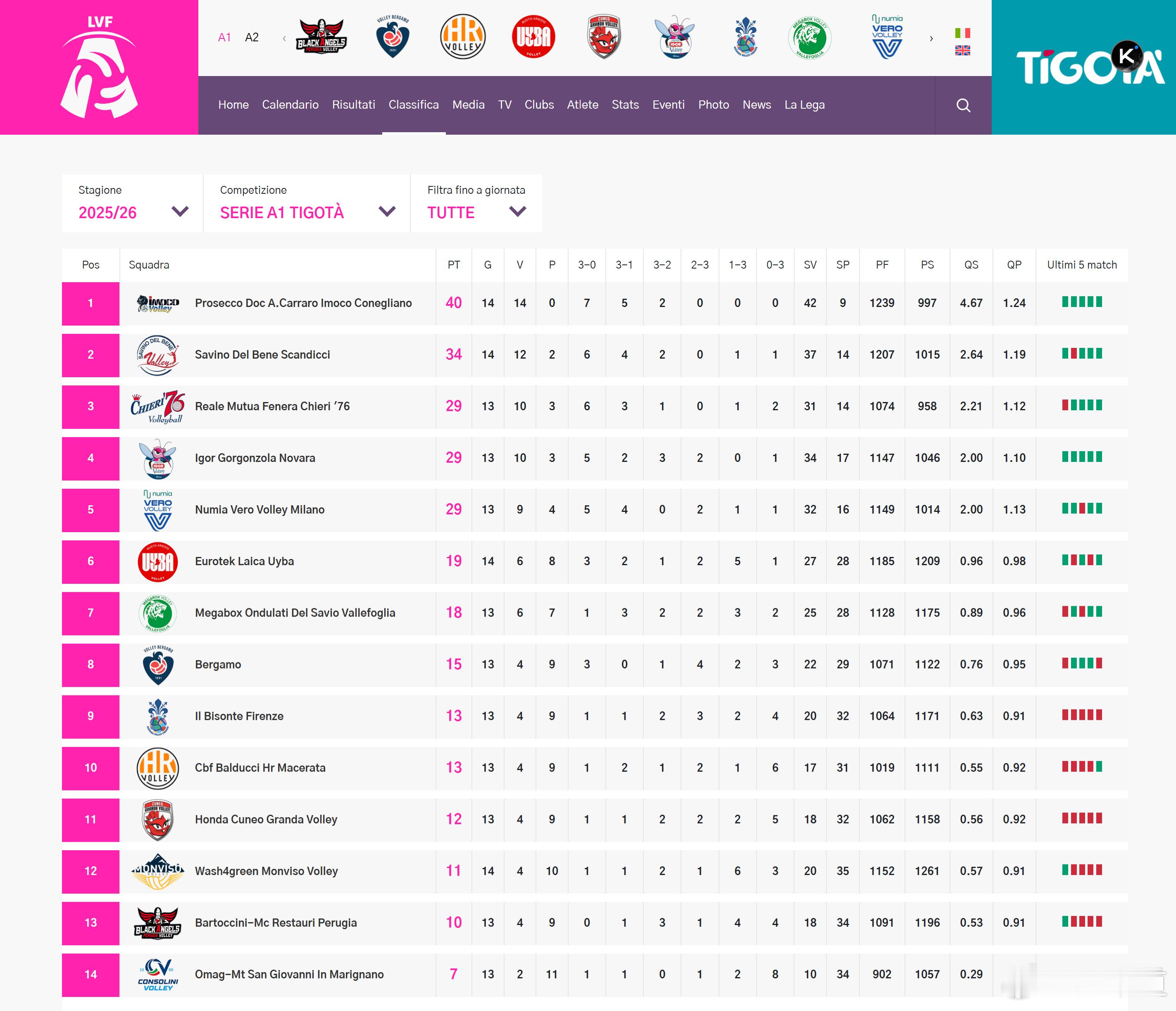 国际排坛动态科内利亚诺意甲女排联赛常规赛上半程结束,意大利杯1/4决赛的对阵也就此揭晓🟥上半区科内利亚诺(1) vs 贝加莫(8)诺瓦拉(4) vs 米兰(5)🟦下半区 基耶里(3) vs 布斯托阿西奇奥(6)斯坎迪奇(2) vs 瓦莱福里亚(7)
