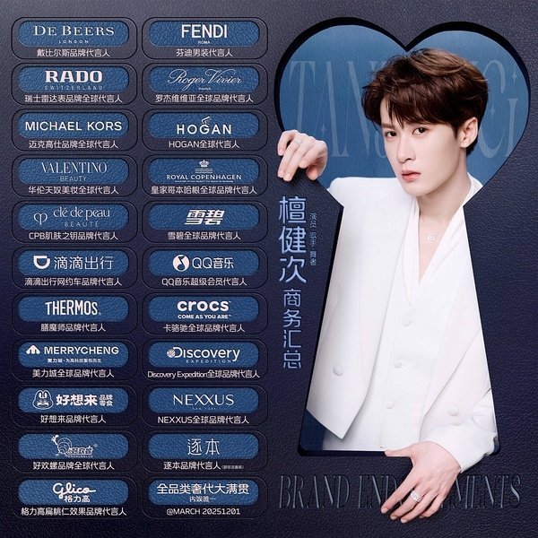 檀健次商业价值真顶啊今年不仅拿下多个奢代还是沙龙香顶级定制欧珑《首位》【全球