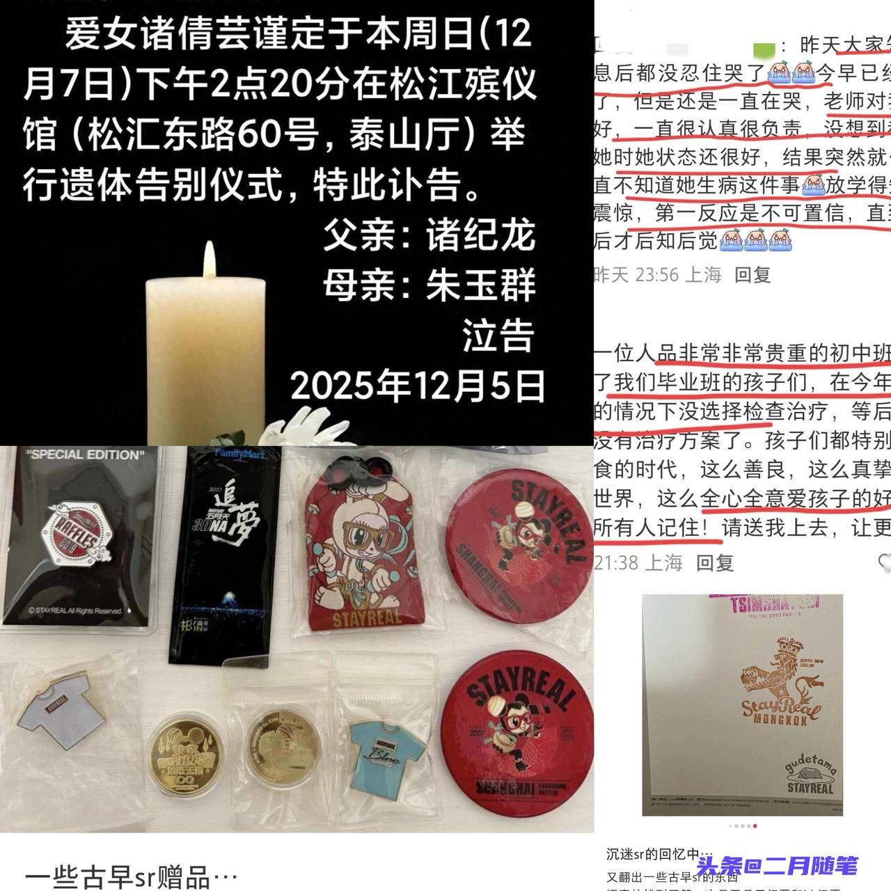 上海31岁老师诸倩芸去世, 带毕业班忽略身体, 查出胃癌仅2个月! 31岁的上海教师诸倩芸, 因胃癌转移在确诊两个月后离世。 生前她坚持带毕业班, 忙于教学与批改作业, 甚至在体重不足80斤的情况下仍坚守讲台。 她关爱学生, 常分饭给没吃午饭的孩子, 亲手为每个学生写贺卡。 即便病痛缠身, 她仍强忍不适, 直到12月6日才被发现病情已无可挽回。 她热爱五月天, 却因病未能如愿参加演唱会。 她的故事令人唏嘘, 也让人深思: 愿所有为他人付出的人, 别忘了先照顾好自己! 31岁老师带病教书离世 致敬人民教师 别让忙碌透支健康副教授离世 肿瘤医生之死 学霸离世 胃癌晚期女孩 英年早逝医生 胃癌女主管 女子病逝