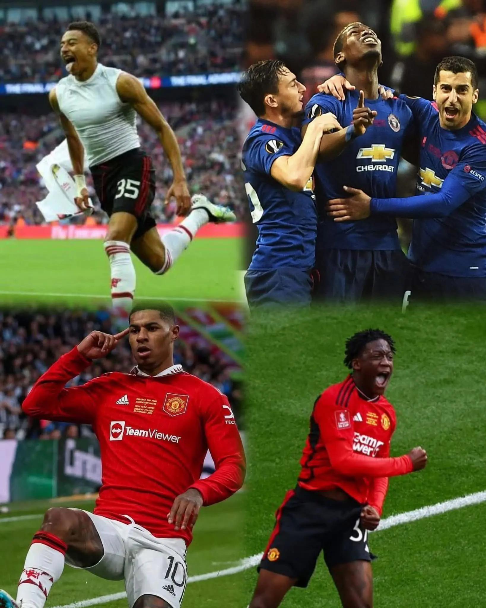 曼联近十年奖杯荣誉:2015/16 足总杯 - 决赛由青训球员进球(林加德)2016/17 联赛杯 - 决赛由青训球员进球(林加德)2016/17 欧联杯 - 决赛由青训球员进球(博格巴)2022/23 卡拉宝杯 - 决赛由青训球员进球(拉什福德)2023/24 足总杯 - 决赛由青训球员进球(加纳乔、梅努)红魔的历史,由青春,勇气,成功组成