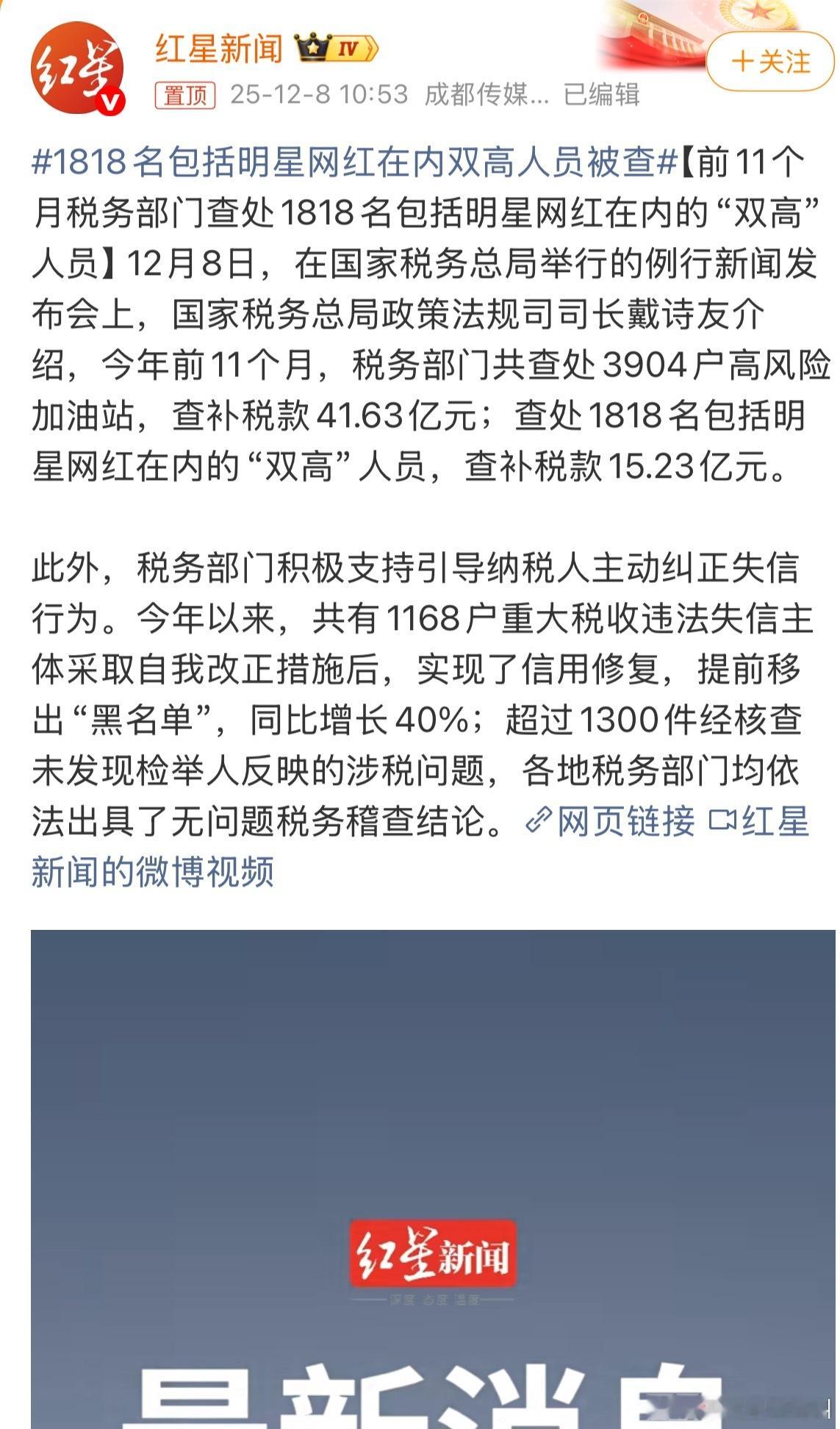 1200人15亿1818名包括明星网红在内双高人员被查