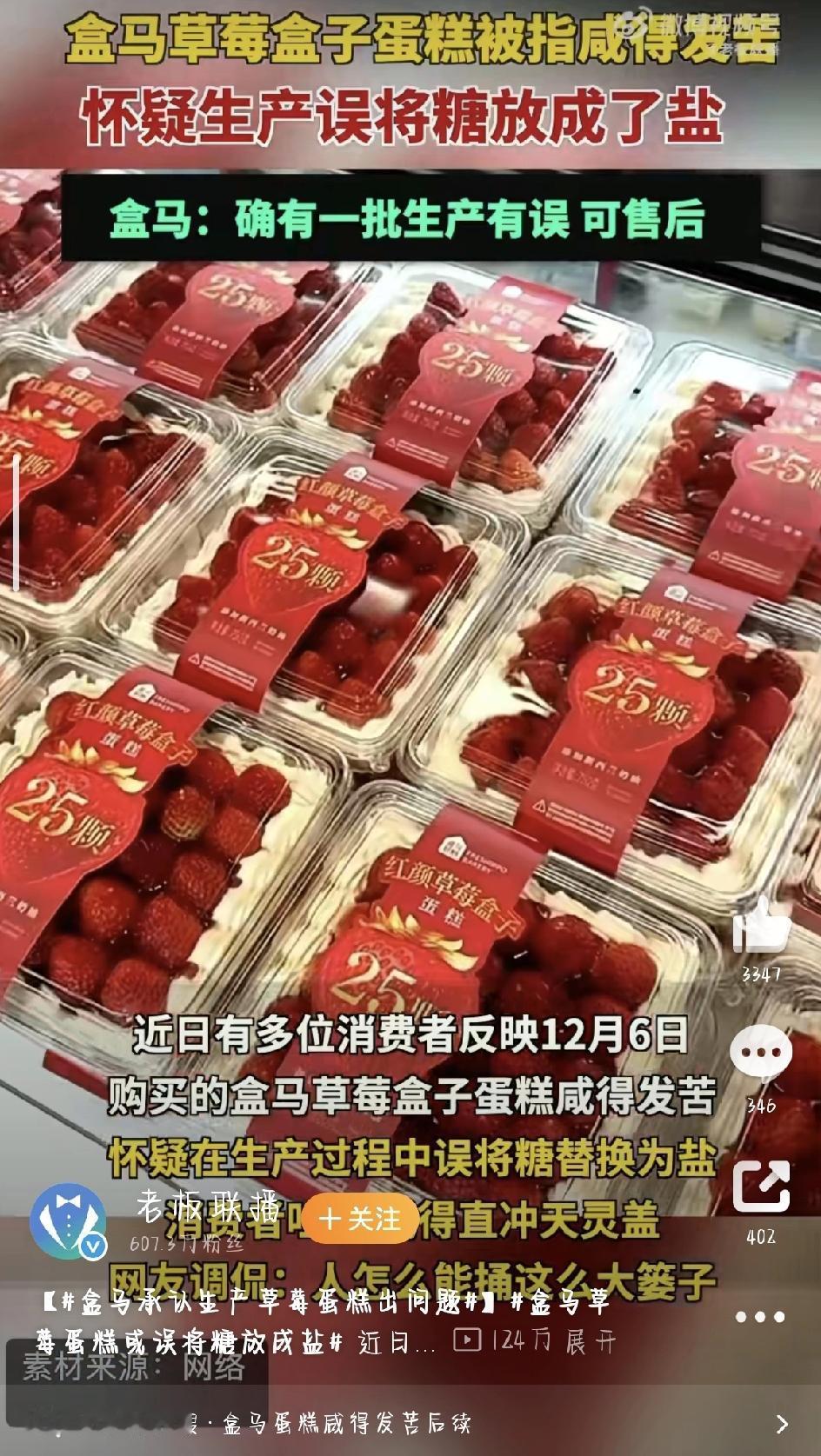 靠盒马草莓盒子蛋糕解馋的朋友,怕是都被整懵了——本来盼着一口甜香,结果咬下去直接被咸到怀疑人生。这事儿最近在网上吵得挺热闹,不少消费者都发帖吐槽,好好的网红甜品怎么就成了“咸口炸弹”。 据买到问题蛋糕的网友说,这款售价79.9元的草莓盒子蛋糕,看着和平时没差,奶油部分吃着也正常,可一碰到蛋糕胚,那味道简直绝了。有消费者形容“咸得发苦”,怀疑是生产时把糖和盐搞混了,还有人说咸味儿“直冲天灵盖”,第一口还以为自己味觉出问题了,反复尝了好几口才敢确认是蛋糕的毛病。网友们也纷纷调侃,“人怎么能闯这么大的篓子”,毕竟把糖换成盐这种低级失误,实在让人想不到会发生在盒马这样的大品牌身上。 大家扒了一下,出问题的蛋糕都来自同一批次,生产日期是12月5日,12月6日才刚上架销售,不少人都是冲着这款季节性爆款去的。要知道,盒马这款草莓盒子蛋糕可是烘焙区的“明星产品”,卖了好几年一直口碑不错,谁能想到这次栽在了口味上,花近80块钱买块“咸蛋糕”,换谁都得闹心。 事情发酵后,盒马客服很快就给出了回应。客服说经过核实,这款蛋糕确实存在问题,原因是“个别原料操作偏差”影响了口感,涉及的商品在7家门店总共卖出了约60份。对于这次失误,盒马也挺诚恳地表达了歉意,还说已经第一时间完成了排查和调整,现在正在对买到问题蛋糕的顾客进行回访,并且会给出相应的补偿。 有已经联系上客服的消费者说,客服不仅给退了款,还发了优惠券作为补偿,处理态度还算积极。不过也有网友觉得,虽然补偿到位了,但作为定价不低的品牌食品,出现这种低级生产失误,还是暴露了品控上的漏洞。毕竟大家买品牌食品,图的就是放心,希望盒马这次能真的吸取教训,把品控关把严,别再让“甜蛋糕变咸糕”这种离谱的事儿发生了。 其实吃东西遇到问题不可怕,关键是商家的处理态度和整改决心。这次盒马响应还算及时,补偿也没含糊,但后续能不能让消费者真正放心,还得看实际行动。希望其他商家也能引以为戒,把食品安全和品质把控放在第一位,别让消费者的期待变成失望。 来源:老板联播