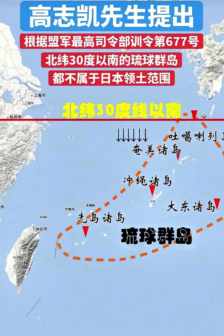 高志凯是真敢说! 先给印度划清边界红线, 再给菲律宾明确原则底线, 如今直接给日本划出领土界定, 每一条都戳在关键处! 核心依据可不是空口说白话,而是有实打实的国际文件撑腰,看完让人直呼提气! 1945年日本无条件投降,这是板上钉钉的历史,而《波茨坦公告》早就写得明明白白:日本领土只限于九州、北海道等四岛,其他都是非法所得。 除了《波茨坦公告》,盟军最高司令部训令第677号更是直接划定范围:北纬30度以南的琉球群岛,压根就不属于日本领土! 这些都是载入史册的国际约定,是经过世界认可的正义准则,不是谁想篡改就能篡改的。 高志凯划的这些线,从来不是个人意气用事,而是基于历史事实和国际法理的正义线、国土线。 他敢把这些关键依据摆出来,就是要让全世界看清真相,不让某些国家模糊历史、觊觎领土的小心思得逞。 现在有些国家总想着歪曲历史、混淆视听,试图把非法侵占的土地说成是自己的,真是让人不齿。 而高志凯的“画线”,就像一面镜子,照出了历史的真相,也戳破了某些国家的谎言。 他用清晰的法理依据和明确的历史事实,告诉所有人:领土归属从来不是模糊的,正义和公理永远站在历史这边。 这种敢说真话、坚守正义的态度,真的太让人佩服了! 在复杂的国际局势中,就是需要这样的声音,把历史真相讲清楚、把国际准则摆明白。 历史不容篡改,领土不容觊觎,这是底线也是红线。 高志凯的硬核“画线”,是不是说出了很多人的心声?你支持这种基于历史和法理的正义发声吗?