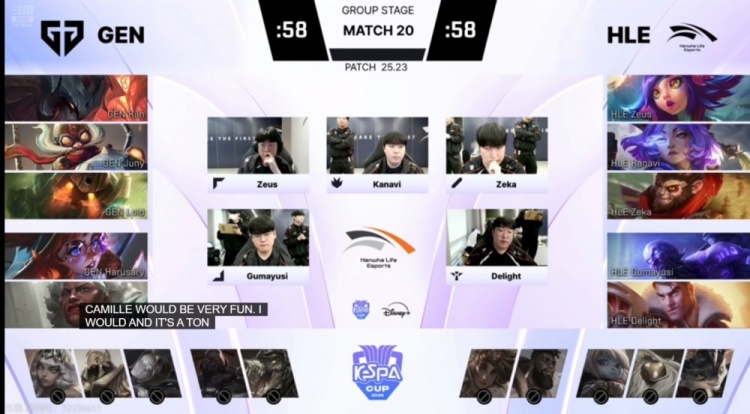 HLE:上单Zeus、打野Kanavi、中单Zeka、下路Gumayusi、辅助Delight