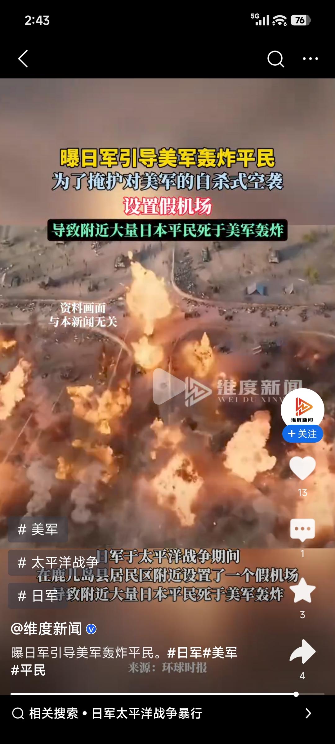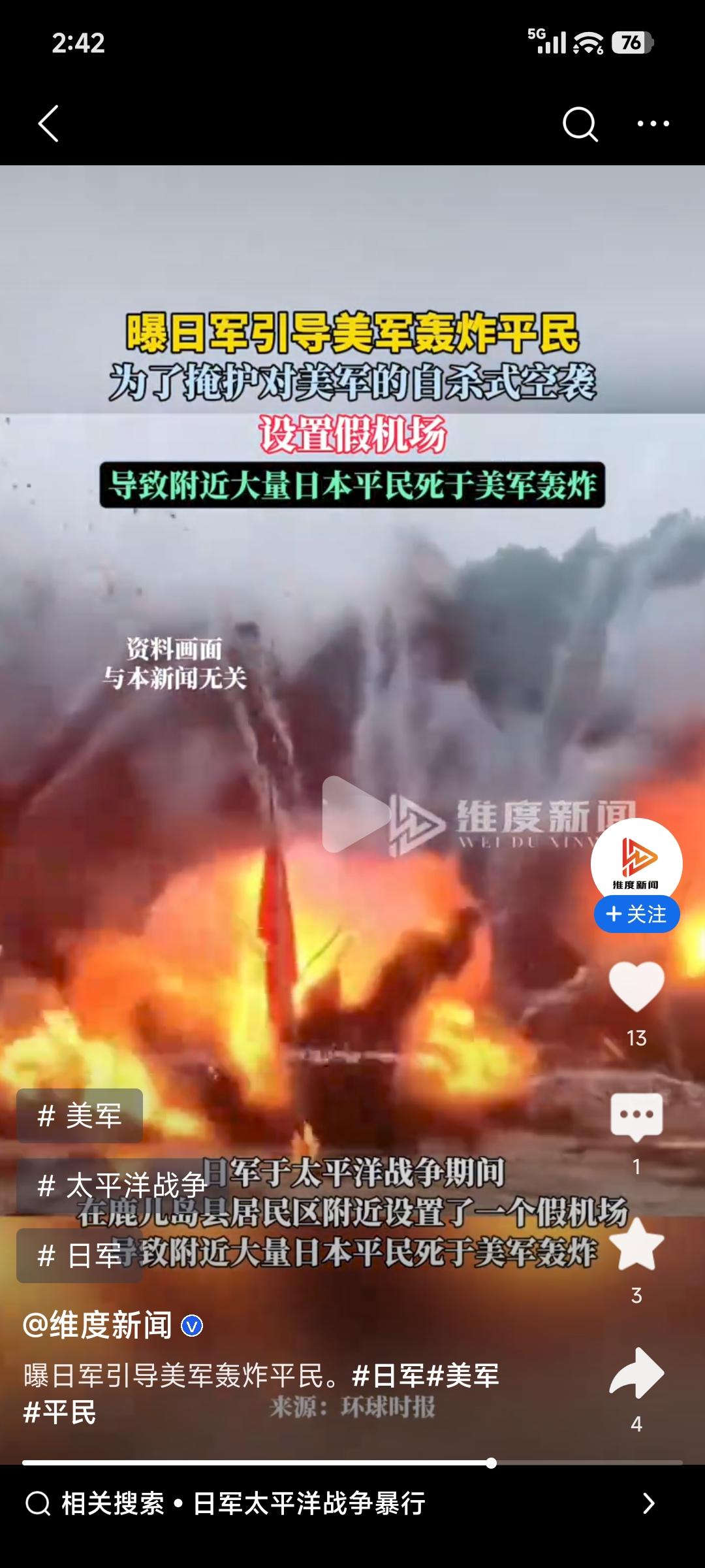2025年12月8日的一则消息让人愤怒不已。据《南日本新闻》报道,一段首次披露的视频显示,在太平洋战争期间,日军为掩护对美军的自杀式空袭,竟做出引导美军轰炸平民这种丧心病狂的事。地点就在鹿儿岛。为了自己的军事行动,他们全然不顾平民的死活,把无辜百姓推向战火深渊。这充分暴露了日军的残暴与冷血,战争本就残酷,他们还如此草菅人命,这种恶行永远不能被原谅,必须被历史铭记!