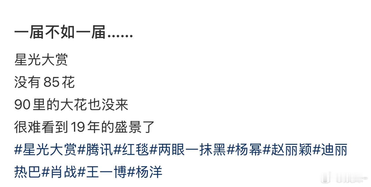 星光大赏要是每年都靠85花 90花撑场子 那才是完蛋了