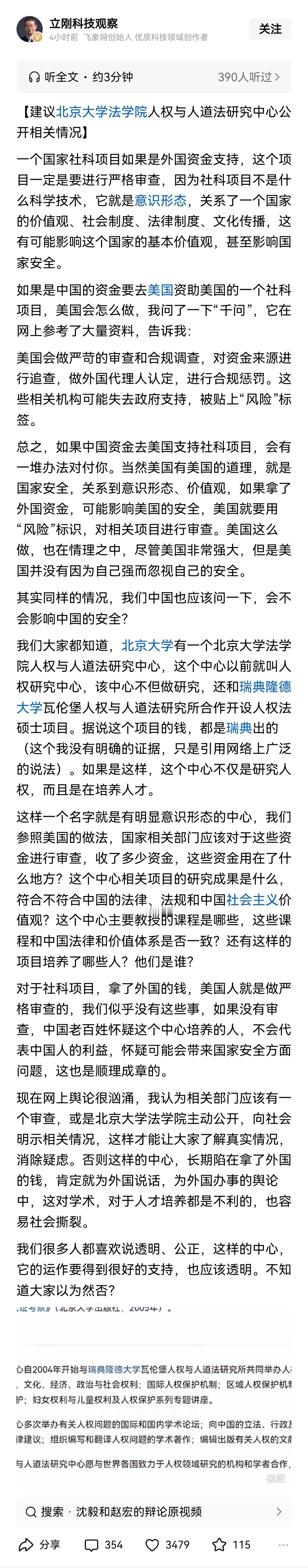 项立刚说得很对,如果我们国内机构要接受外国资金资助,就应该对资金来源进行追查,并做外国代理人认定。毕竟“它就是意识形态,关系了一个国家的价值观、社会制度、法律制度、文化传播,这有可能影响这个国家的基本价值观,甚至影响国家安全。” 如果我们不严加审查,不做外国代理人认定的话,那有可能混进一些不为人知,披着羊皮的豺狼进来,进而危及我国社会秩序,国家安全。 而且仅仅做外国代理人认定还不够,还应该切断国内财政申请补助,毕竟你都接受外国资金资助了,应该不再被允许申请国家财政补助了。 同时,我国应该加快制定《反外国代理人法》了。避免、杜绝一些外国代理人参与制定国策的漏洞!毕竟宁可错杀,不可放过。一旦一个国家的价值观、社会制度、法律制度、文化传播,被外国代理人渗透,并污染。那造成的后果,将比一场真正的战争更可怕! 所以如果按照赵宏所说的要与国际接轨的话,那《反外国代理人法》更应该优先与国际接轨! 大家讨论下,要不要优先制定《反外国代理人法》呢?