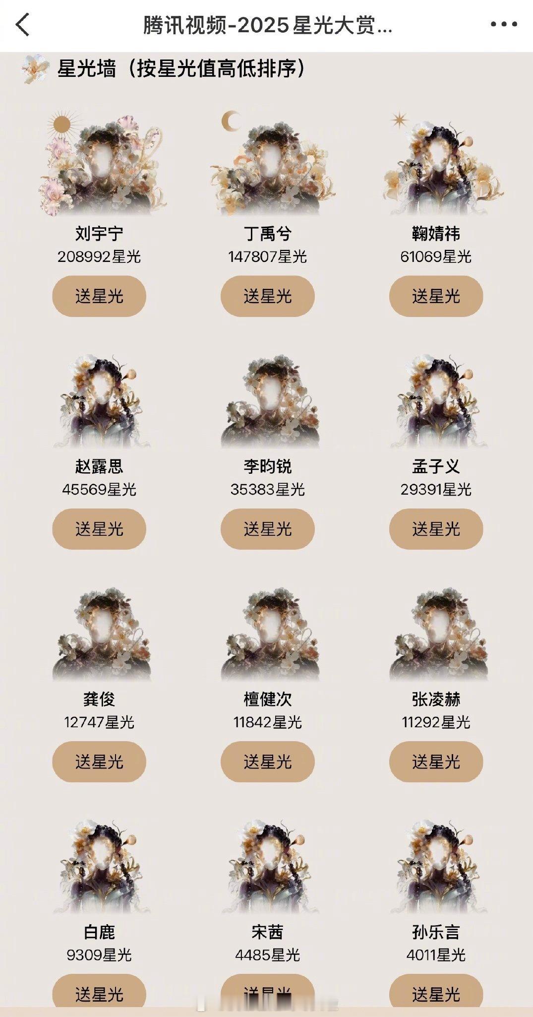 星光大赏星光墙TOP10👇刘宇宁、丁禹兮、鞠婧祎、赵露思、李昀锐、孟子义、龚俊、檀健次、张凌赫、白鹿 星光大赏阵容官宣星光大赏官宣热度 星光大赏官宣10分钟指数破8000万