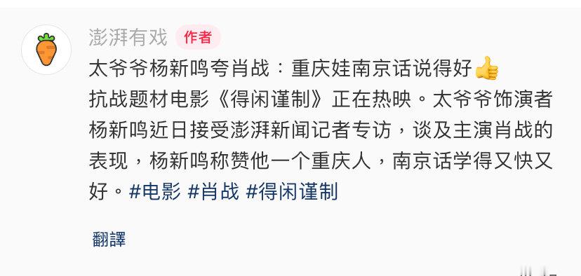 得闲谨制太爷爷夸肖战南京话说得好肖战重庆娃南京话说得好肖战真的十分敬业呀!肖战