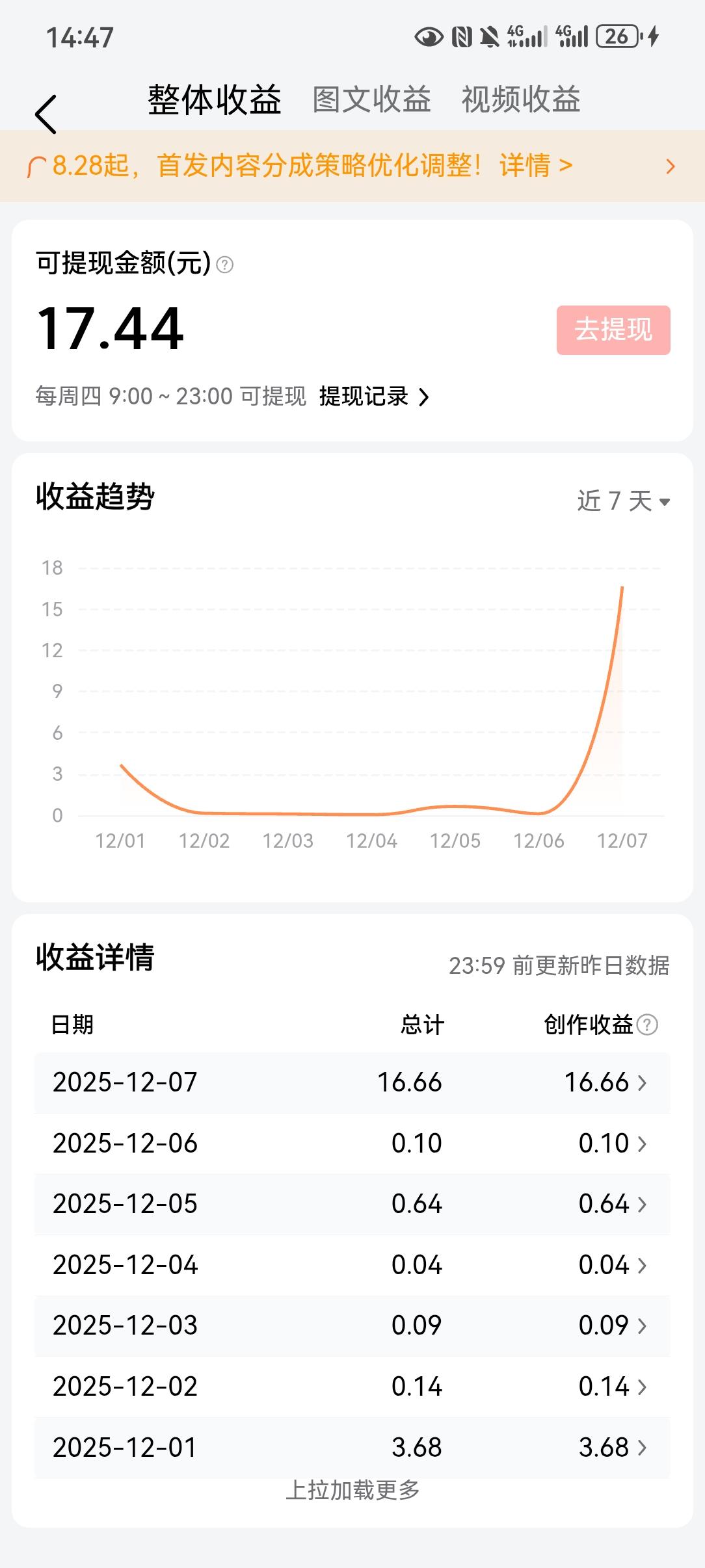 入驻头条整一月,爆文来得不算晚 盯着后台数据从四位数蹦到五位数时,指尖突然有点发颤,25万展近3万的阅读量580条评论450多个赞,单篇图文收入也仅16.66元,但对于仅仅入驻头条一个月的新人来说不单单是喜悦更是鼓励。这篇被改了七遍的稿子,发布半天还安静地躺在“推荐量低迷”的列表里,却在当天下午突然被推上浪尖——评论区里,有人说“终于有人把这件事说透了”,有人追着问后续。 这一个月,其实更像一场和自己的较劲。刚入驻时,总想着“爆款公式”,把热点榜单翻到发烫,写的稿子却像隔着层玻璃,读者看得到字,却摸不到温度。直到某天深夜,对着台灯写下自己踩过的职场坑、见过的真实故事,反而收到了第一条走心评论:“这段我感同身受”。 爆文来的当天,突然懂了:平台的算法再精密,终究抵不过“真诚”二字。那些被反复删改的段落,那些纠结到凌晨的措辞,那些藏在字里行间的“我懂你”,才是能穿过屏幕的力量。 它也让我看清,所谓“爆”,从来不是终点。就像此刻,后台还有读者在催更,私信里的问题等着回复,而新的选题已经在笔记本上画了圈。原来写作最动人的,不是数据跳涨的瞬间,而是你知道,有一群人在屏幕那头,等着和你继续对话。为了能及时评论区友友们的评论,忙的我是不可开交,直至头晕眼花,一直回复到凌晨一点乐此不疲。 下一个月,继续写下去吧。写得笨拙也好,用力也罢,总有人会接住你的真诚。 点亮〔收藏和赞〕你我共同成长