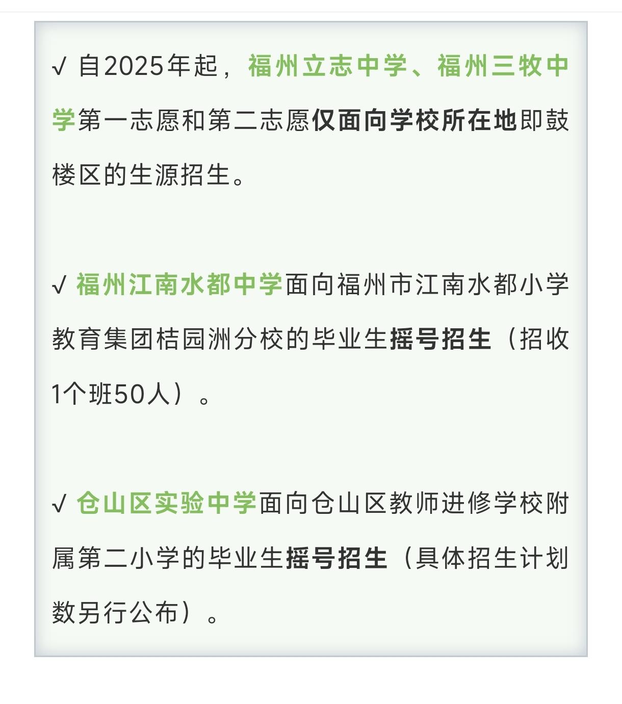 今后,民办立志中学、三牧中学仅收鼓楼区生源,外区不招了!公办江南水都中、仓实验中招生也有变化。