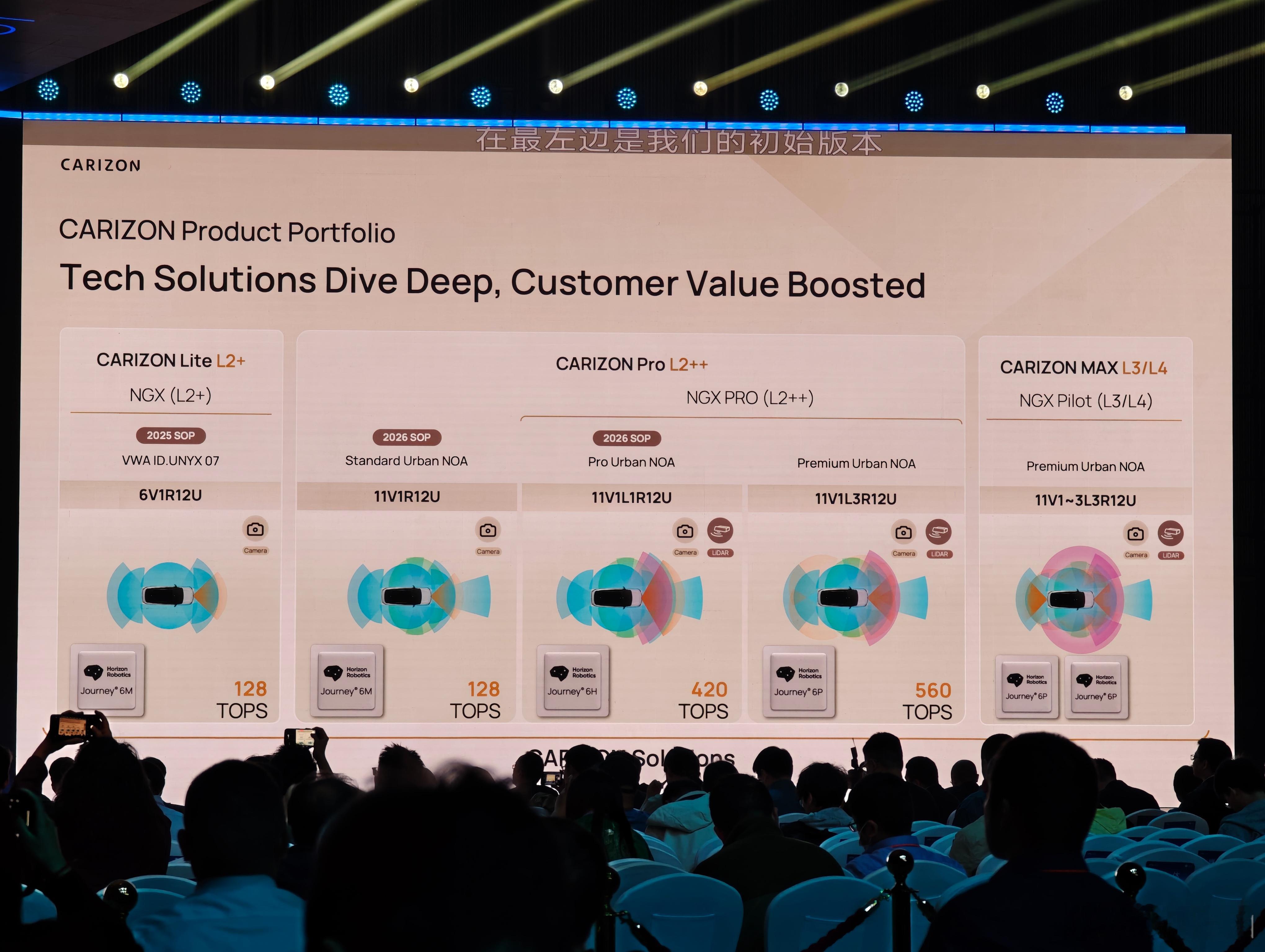 大众和地平线合资的智驾公司CARIZON,明年将推出基于地平线J6M芯片的城市辅助驾驶方案,大概率将用于江淮大众,也就是与众的车型上。而CARIZON用的测试车,是小鹏G6。所以,江淮大众明年将有2套智驾方案?一套是CARIZON自研,一套是和小鹏合作?2025地平线技术生态大会 地平线HSD激活车辆超1.2万