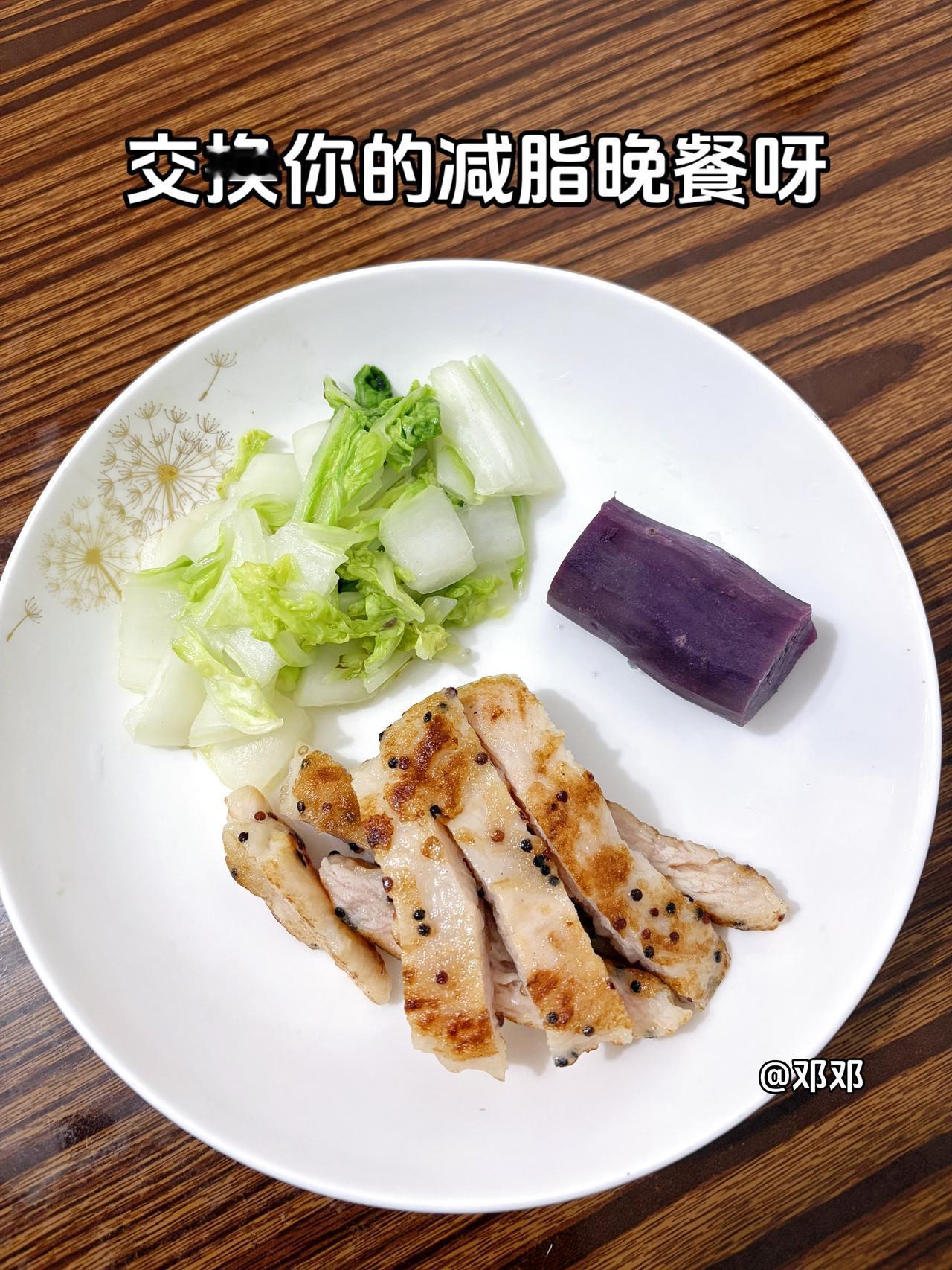 泪水打湿我的减脂餐,还有五斤要减,加油 今日减脂晚餐:藜麦鸡排+紫薯+素炒白菜