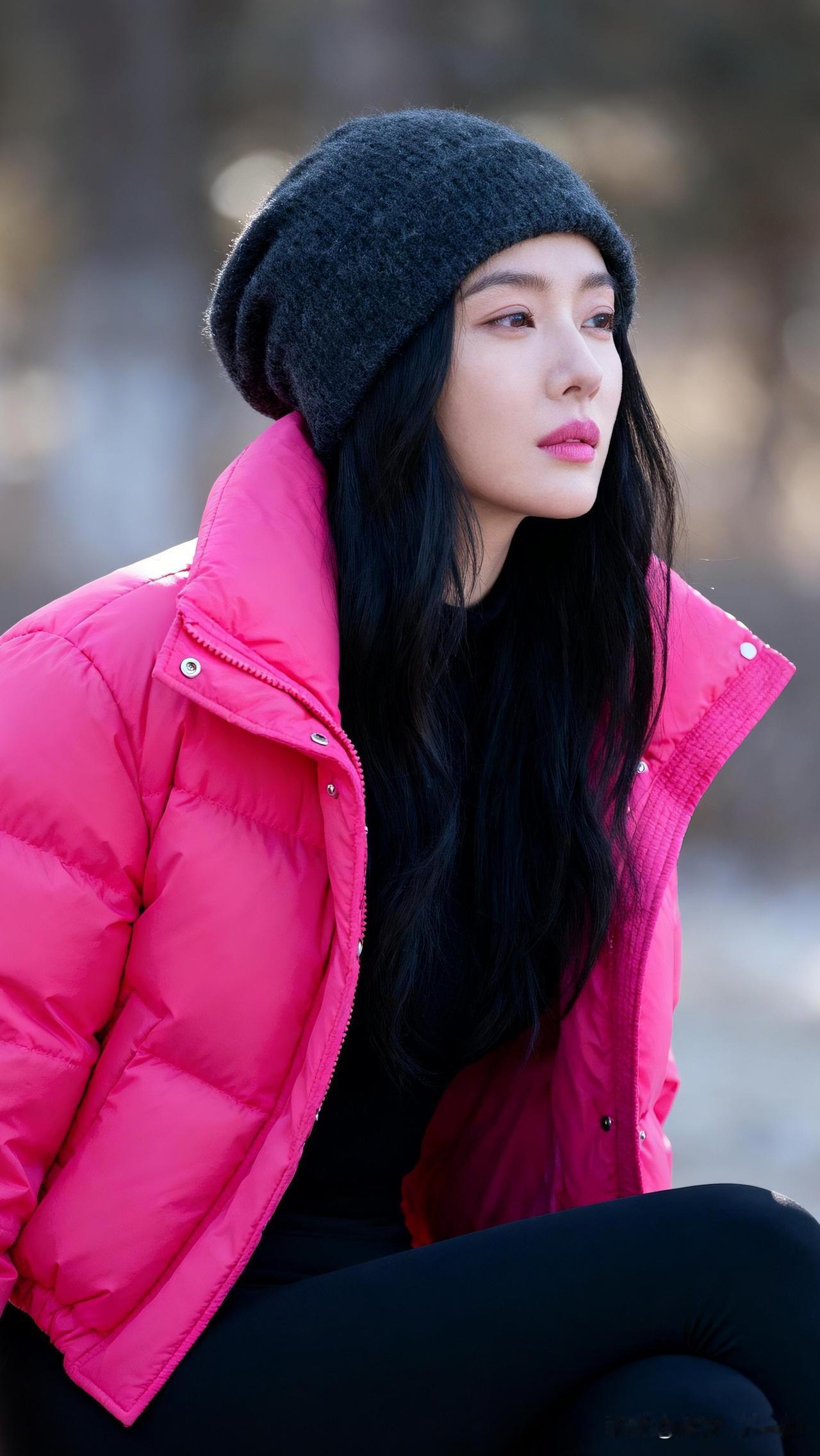 粉衣少女倚树坐,黑帽轻遮发如瀑。有哪些女生日常好看穿搭可以借鉴 冬日暖阳下,粉外套与黑发相映成趣,温暖而时尚。