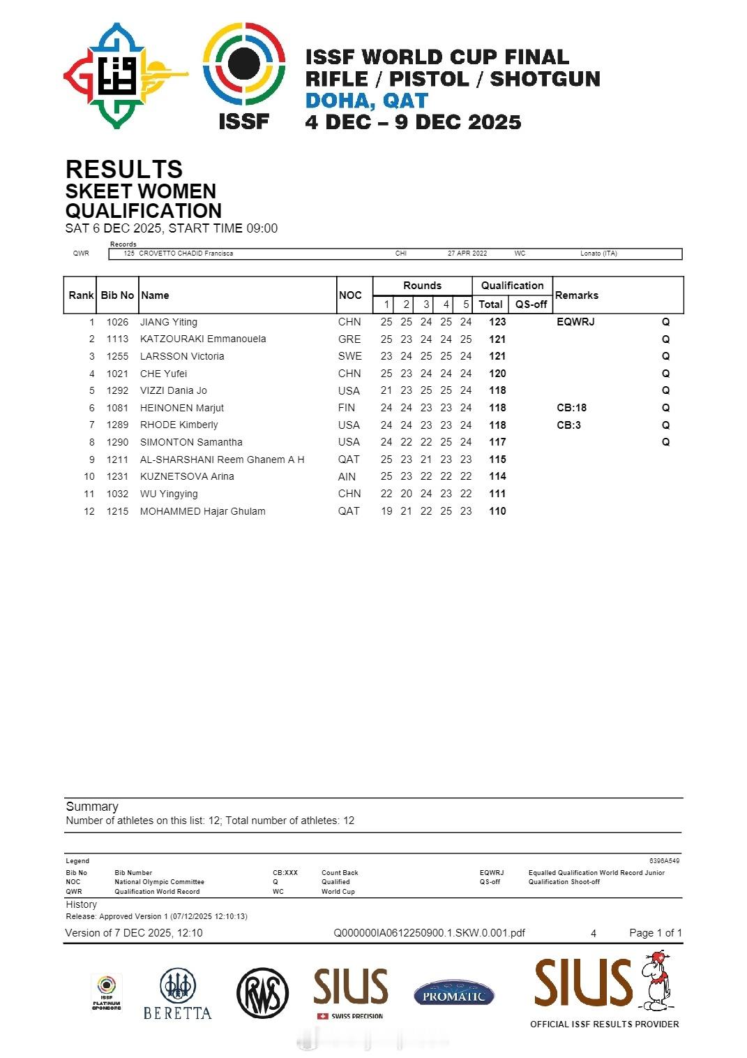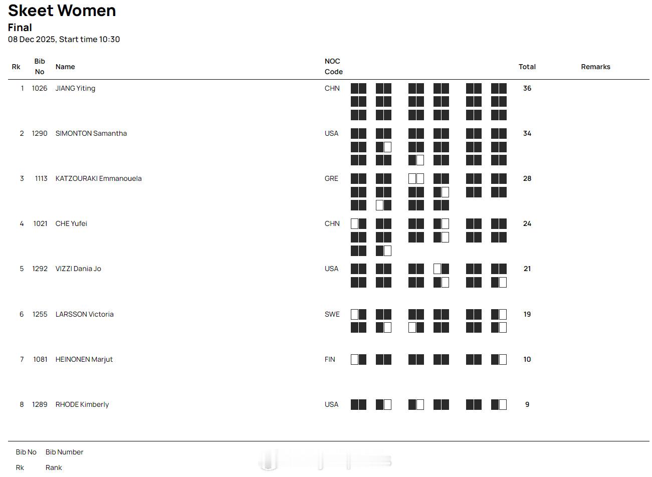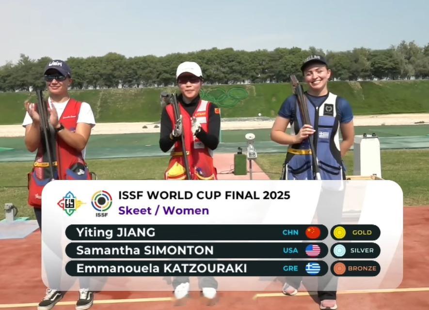 【射击世界杯总决赛双向飞碟江伊婷百发百中夺冠】国际体坛战报速递 12月8日多哈,射击世界杯总决赛结束飞碟女子双向比赛。在资格赛就排名第一的中国选手江伊婷在决赛中发挥完美,36发全中夺得中国队第四枚金牌。美国队世锦赛冠军西蒙顿落后两中获得亚军,希腊卡特佐拉基摘得铜牌。另外一位中国选手车雨霏名列第四。