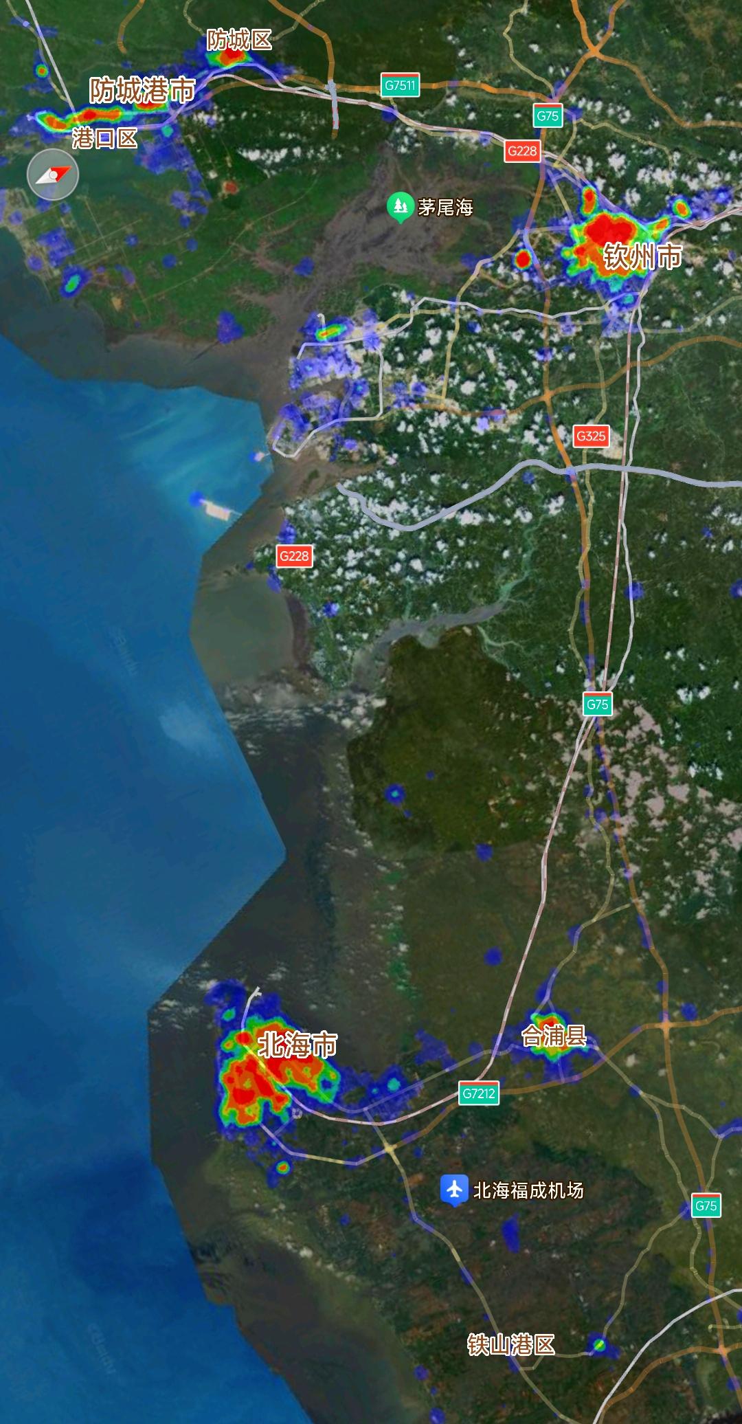 北海人口数量188万,钦州常住人口数量333万,可是从城市热力图看北海繁华程度略胜钦州一筹。 更主要的是钦州有2个区2个县,北海有3个区1个县,城市化率的差距并不大。因此看到这样的场景让人感觉到不可思议,最合理的解释或许就是北海对外地人的吸引力会更强一些。