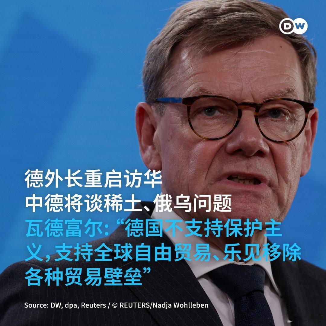 德国外长瓦德富尔访问中国 他表示,德国不支持保护主义,“支持全球自由贸易,也乐见移除各种贸易壁垒”。瓦德富尔称,中国是德国最重要的贸易伙伴,此行目标在于找出“能够强化双方经贸合作之处、同时厘清仍存在的障碍”,盼维系并扩大德中伙伴关系。态度端正了许多。
