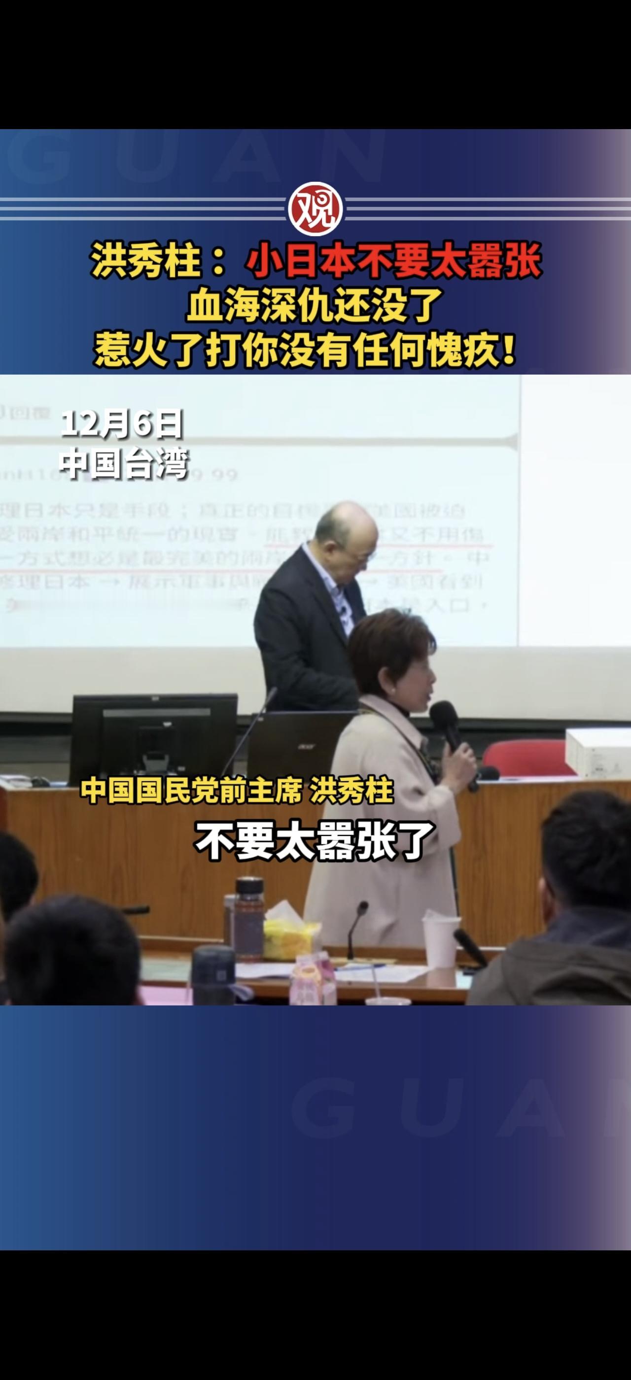 洪秀柱:小日本别太嚣张,惹火了大陆打你毫无悬念。 日本持续挑衅中方,嚣张的态度