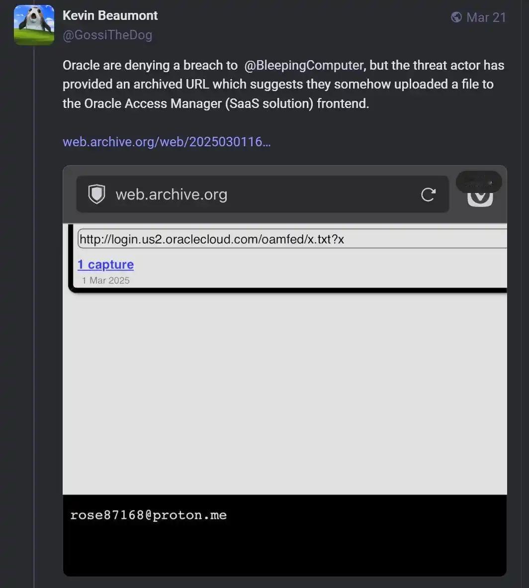 太震惊了! Oracle云泄密后续,12月8日追责升级。 上千家中企还在为600万条被盗数据焦头烂额,科技巨头Oracle的“甩锅操作”竟愈演愈烈——12月8日,国内13家受害企业联合提起诉讼,要求其公开漏洞整改细节并赔偿损失,这场持续近9个月的信任危机,终于撕开了云计算行业的“安全遮羞布”。 事情要从3月说起。黑客“rose87168”在暗网高调宣称攻破Oracle云服务,窃取含加密密码、安全证书在内的600万条记录,涉及14万企业客户,其中中国公司超1000家。更致命的是,黑客曝光的内部录音和漏洞分析显示,入侵跳板竟是一个**十年未修复的旧漏洞(CVE-2021-35587)**,涉事服务器组件早在2014年就已停产,却仍在承载敏感数据。 按理说,铁证面前应全力补救,但Oracle的操作堪称“灾难公关教科书”。先是一口咬定“云服务未被入侵”,被扒出删除黑客留下的证据后,又玩起“术语游戏”,将旧版“Oracle Classic”与新版“OCI”切割,声称“新版不受影响”。可安全专家戳破了谎言:“无论叫什么名字,都是Oracle管理的服务”,这种避重就轻的态度,让受害企业彻底寒心。 更让人警惕的是,这场泄密绝非个例。10月刚曝出两款AI陪伴应用因服务器未设权限,导致4300余万条私密聊天记录泄露;而Oracle此次泄密的影响更具毁灭性——被盗的SSO密码可能成为黑客横向入侵企业内网的钥匙,有安全团队警告“攻击者或长期潜伏部署勒索软件”。 有人说这是“技术漏洞”,但本质是“责任漏洞”。云计算的核心价值本是“专业保障”,可Oracle一边收着高昂服务费,一边对基础安全维护敷衍了事,甚至用“文字游戏”逃避责任。这暴露的不仅是一家企业的道德缺失,更是整个行业的监管盲区:当云服务商既当“守门员”又当“裁判”,如何确保用户数据安全? 我国《生成式人工智能服务管理暂行办法》早明确要求“保障数据安全”,北京也已建立“用户标记—平台核查—联合处置”的闭环机制,但Oracle这类跨国企业的“监管逃逸”问题仍待破解。此次13家企业联合起诉的意义,远超索赔本身——它在倒逼行业建立“安全问责制”:云服务商不能只赚“安全钱”,更要负“安全责”。 网友说得一针见血:“**云计算不是‘安全保险箱’,而是‘责任共同体’**”。当企业把数据交给云服务商,买的不仅是存储空间,更是安全承诺。Oracle的信任崩塌警示所有科技巨头:技术再强,也强不过用户的信任;漏洞再多,也多不过逃避责任的借口。 这场诉讼或许只是开始。但它至少让我们看到:在数据安全面前,没有“甩锅”的空间,只有“担责”的底线。毕竟,没人会把身家性命交给一个连漏洞都不敢承认的“守护者”。你觉得企业该如何规避云服务泄密风险?评论区聊聊。
