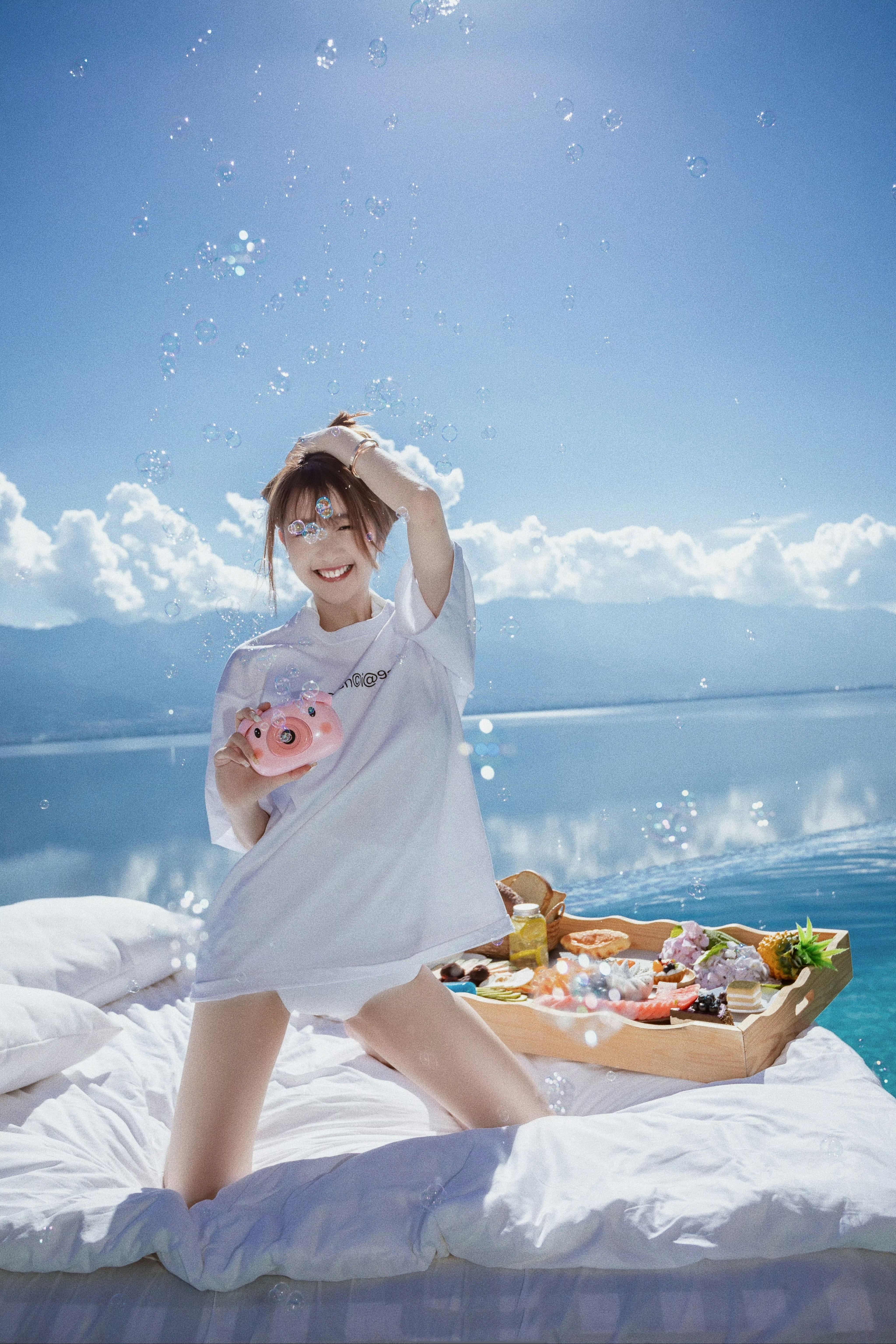 卓仕琳 x 白衬衣度假美图,大长腿吸睛,好唯美的海边氛围
